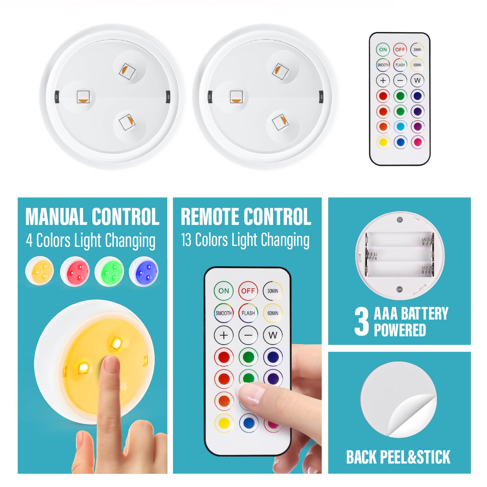 Remote & Tap Control LED Lights (2 Packs) Battery Powered