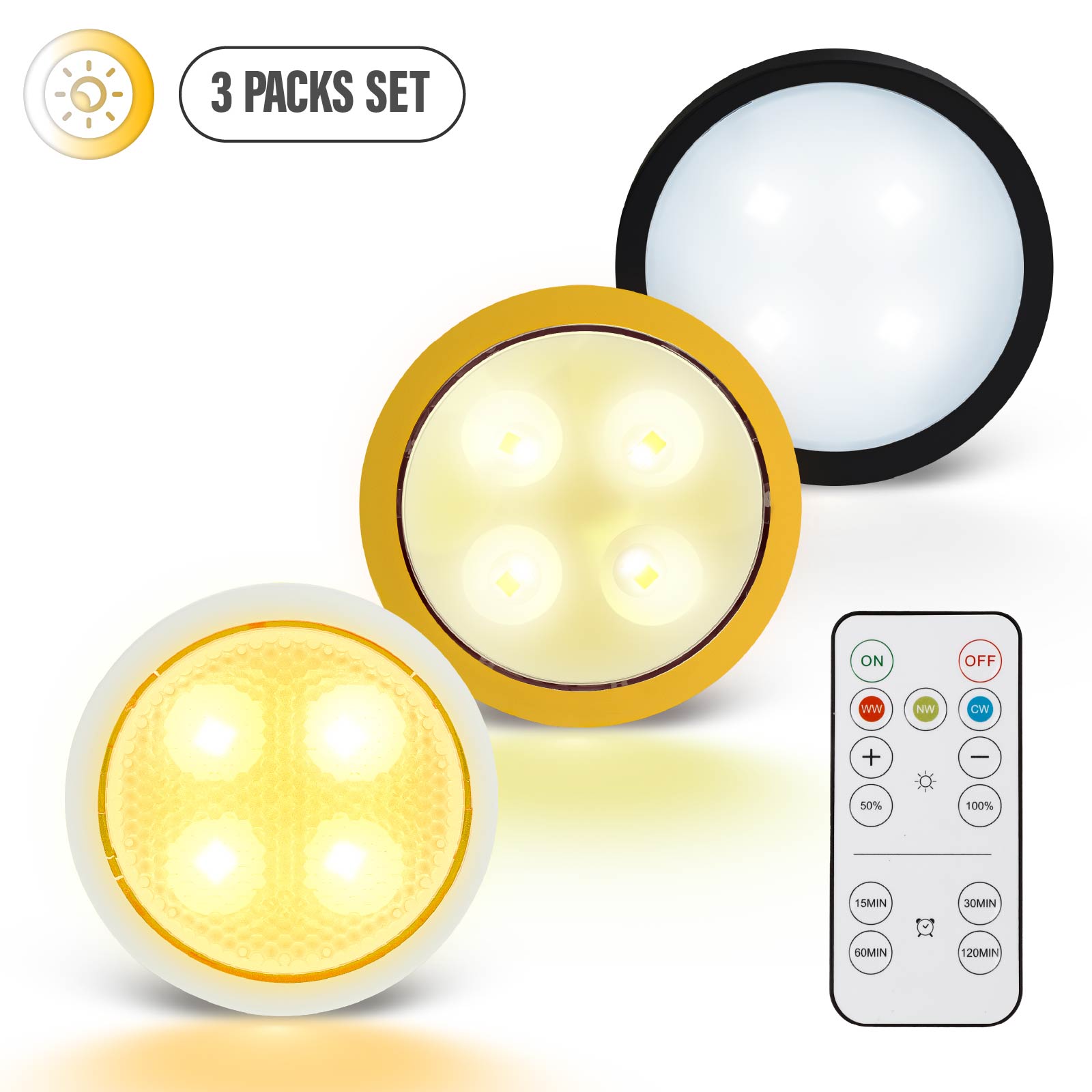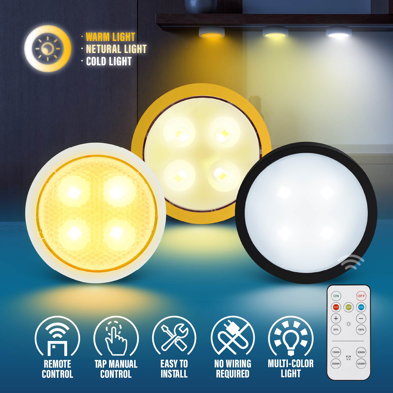 Wireless closet lights effectively brighten your kitchen counter, bookshelf, display cabinet, wardrobe or stairs. Create romantic atmosphere for tent camping, home party, Halloween pumpkins, Christmas tree and other festival occasions.