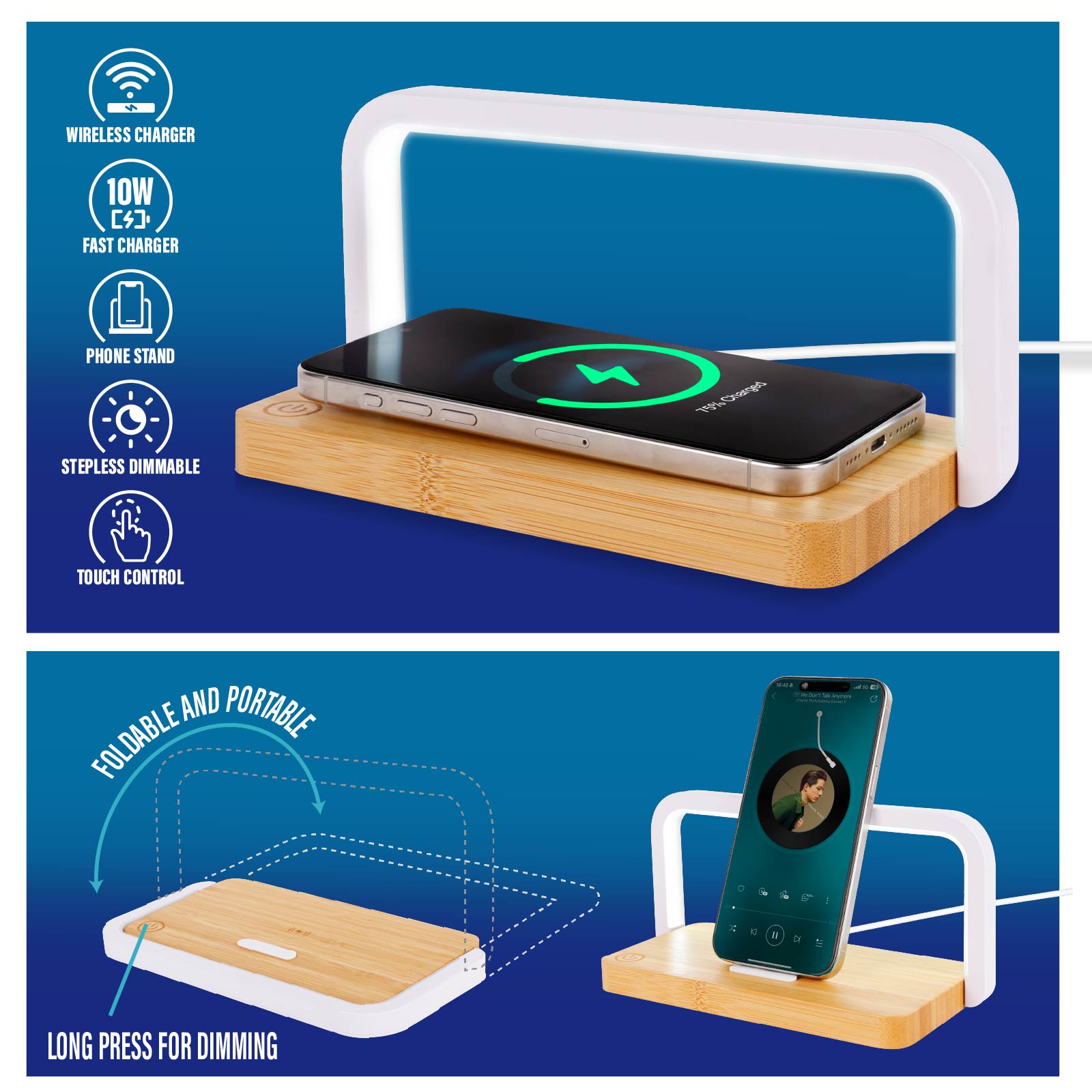 - Function : Wireless Charger, Night Light, Touch Light Control, Foldable and Portable