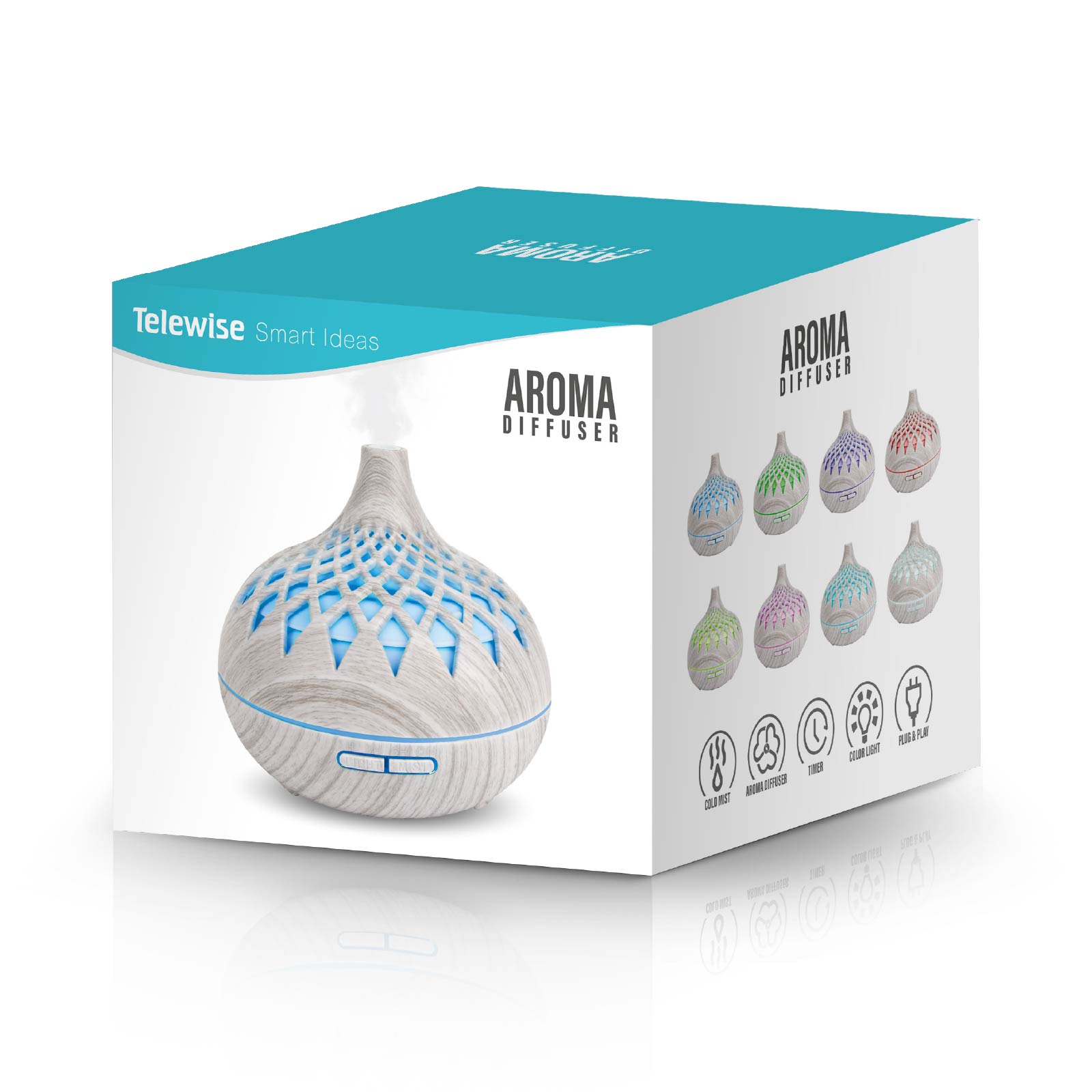 - Function : Aroma Diffuser, Cold Mist, Timer, Color Light