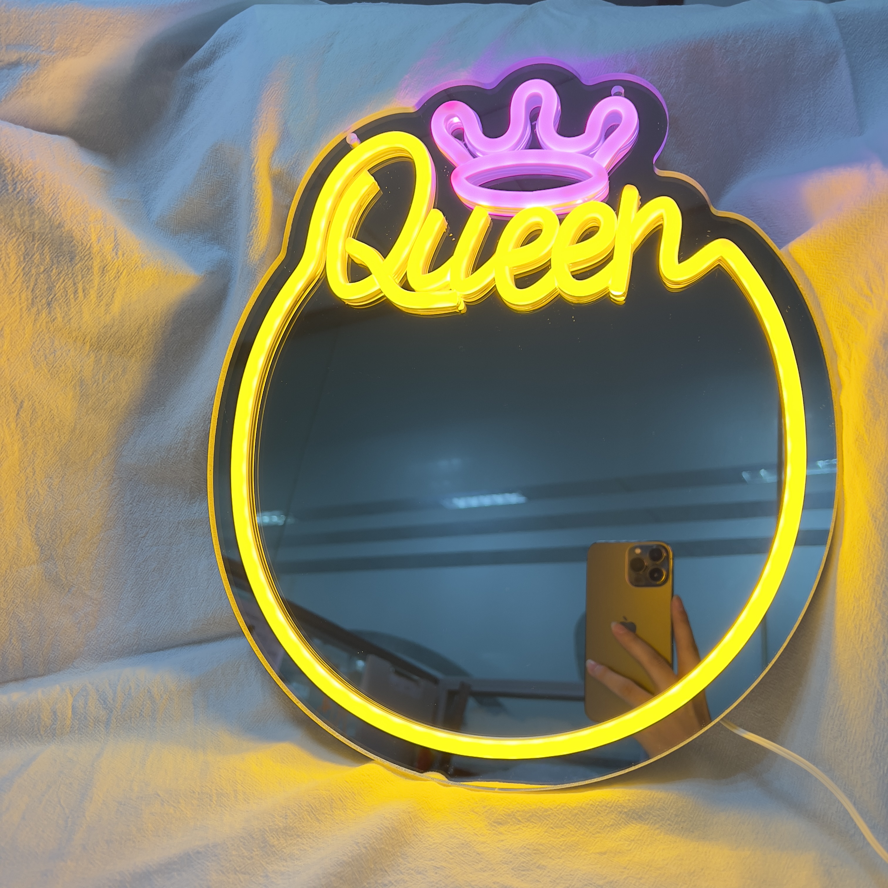 Queen Neon Mirror for Wall Decor USB Powered