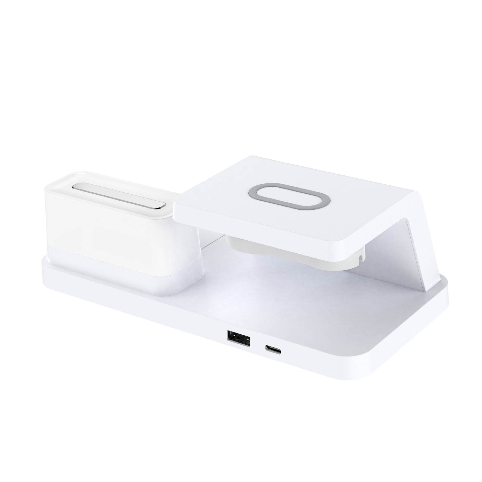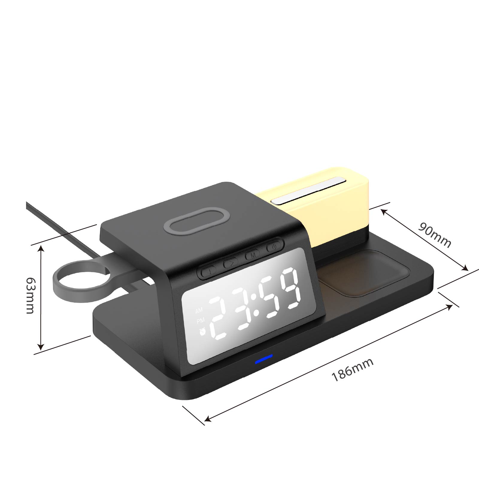 - Function : 2 In 1 Wireless Charger(for Phone, Earphone), Watch Charger Stand, Alarm Clock, Time Display, USB Charging Port, Night Light