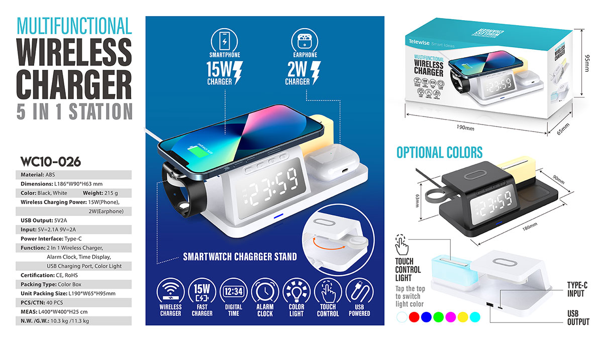 WC10-026All in one muliti-purpose wireless charger, 15W Max output, meet the charging demand.