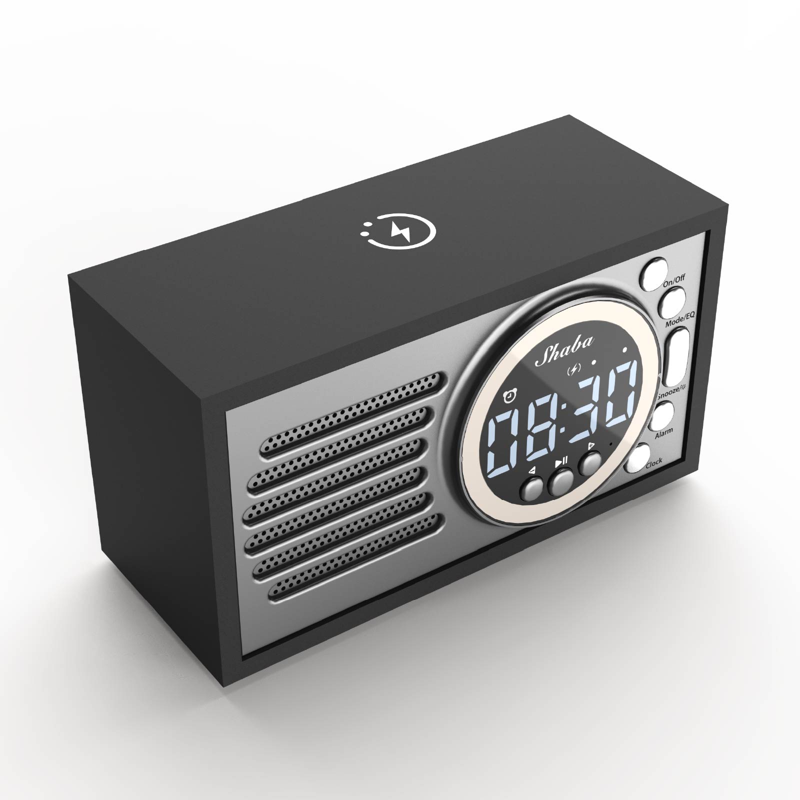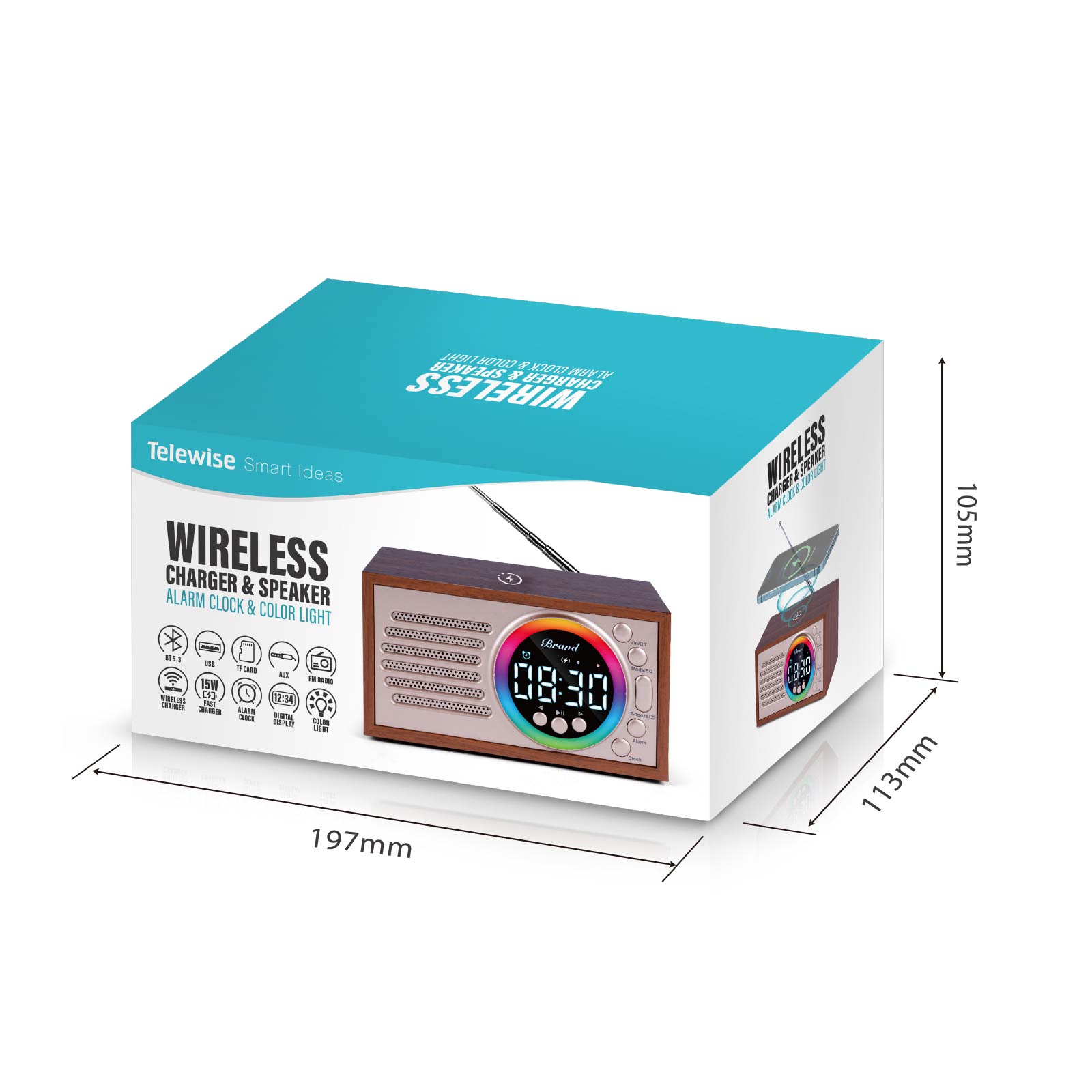 BT02-079Wireless Charger, Wireless Speaker, Alarm Clock and Color Changing Night Light, are integrated into one design.