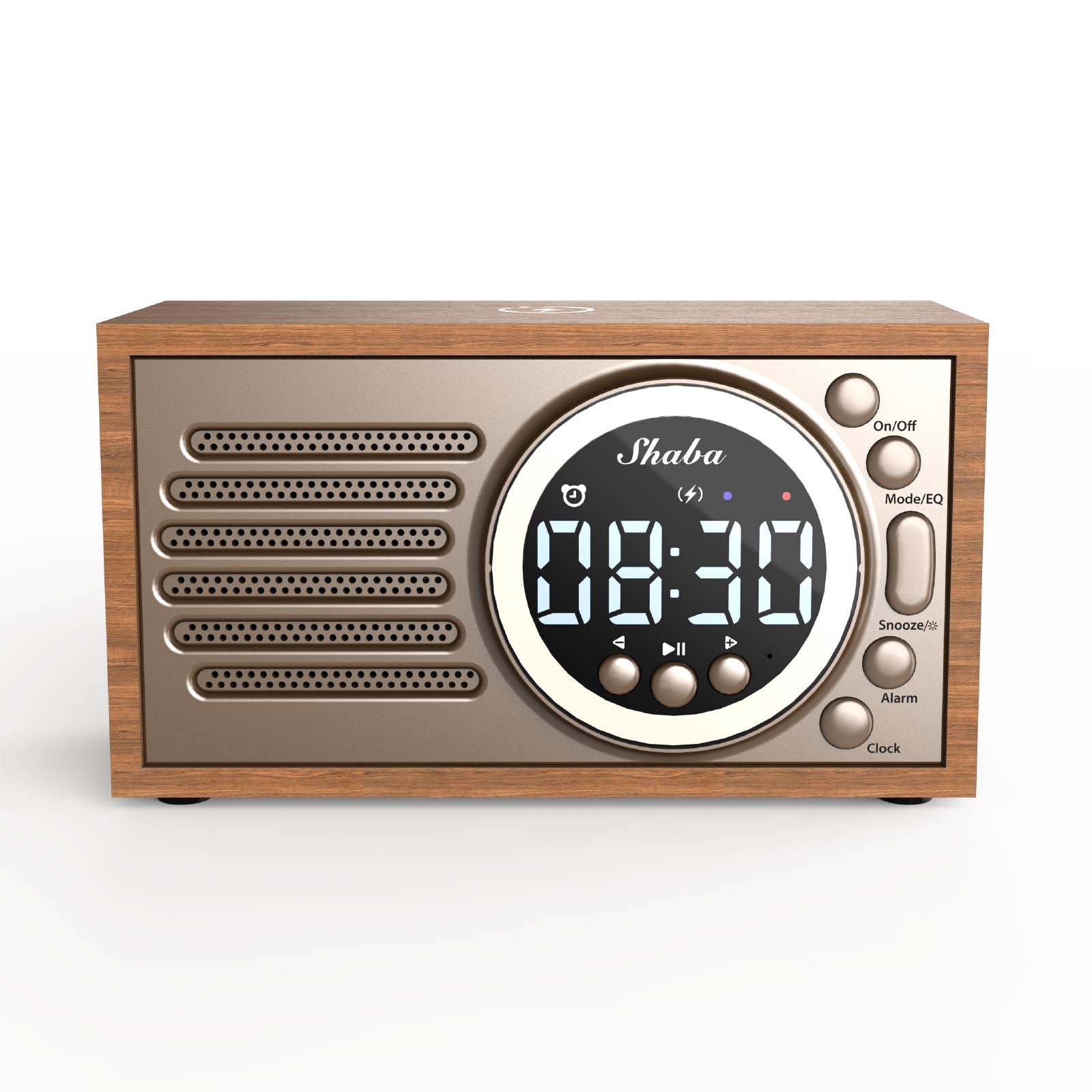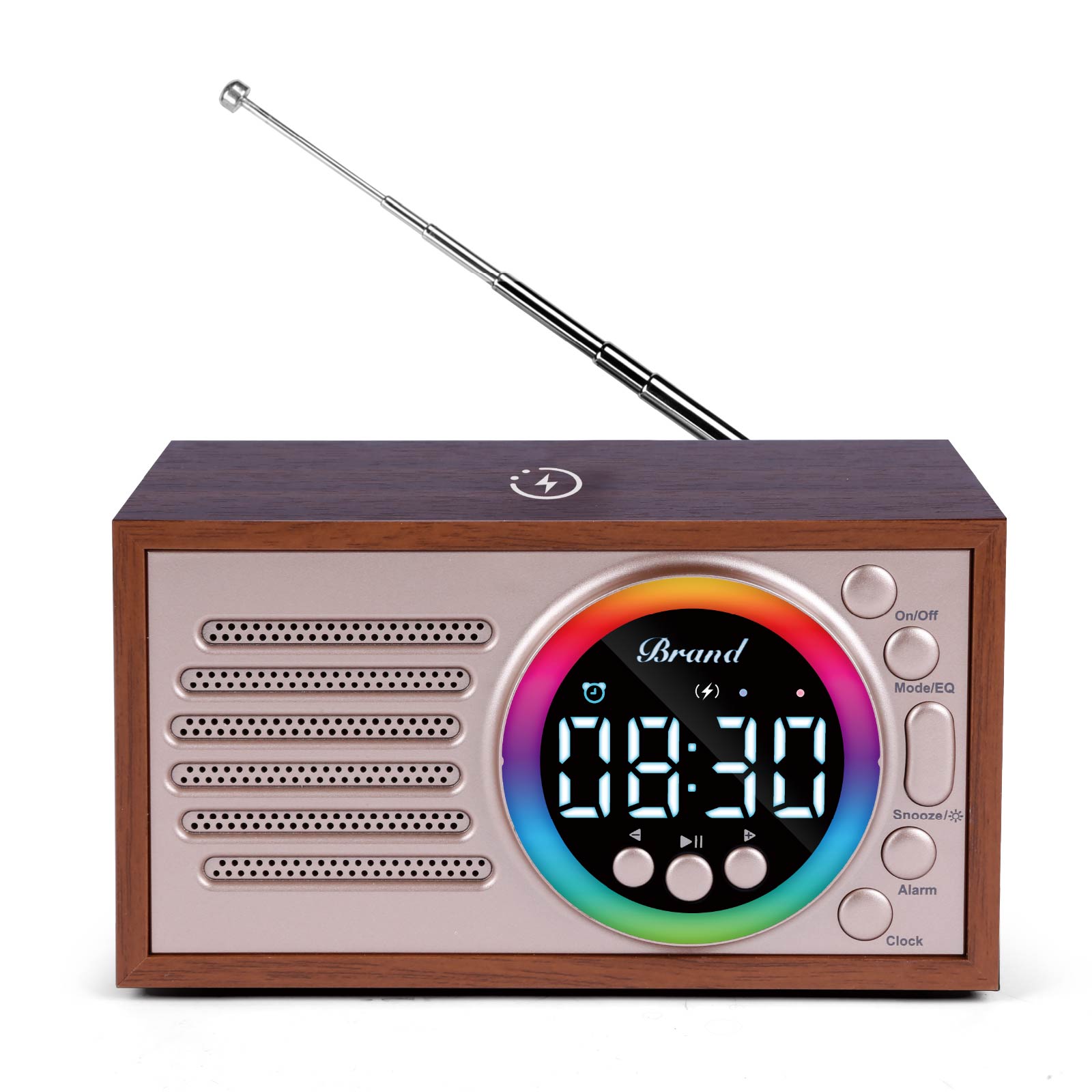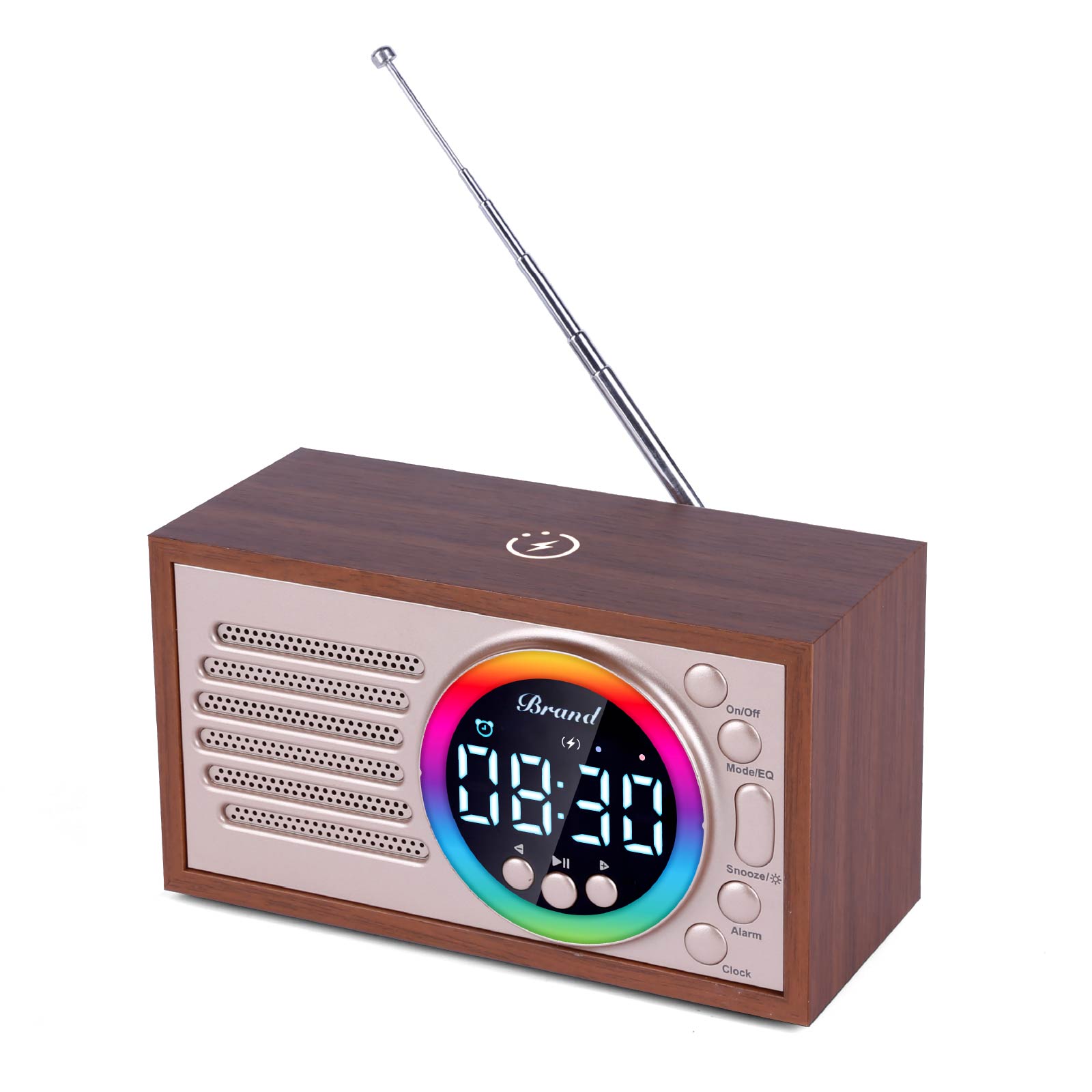 Wooden 15W Wireless Charger & Led Speaker with Alarm Clock