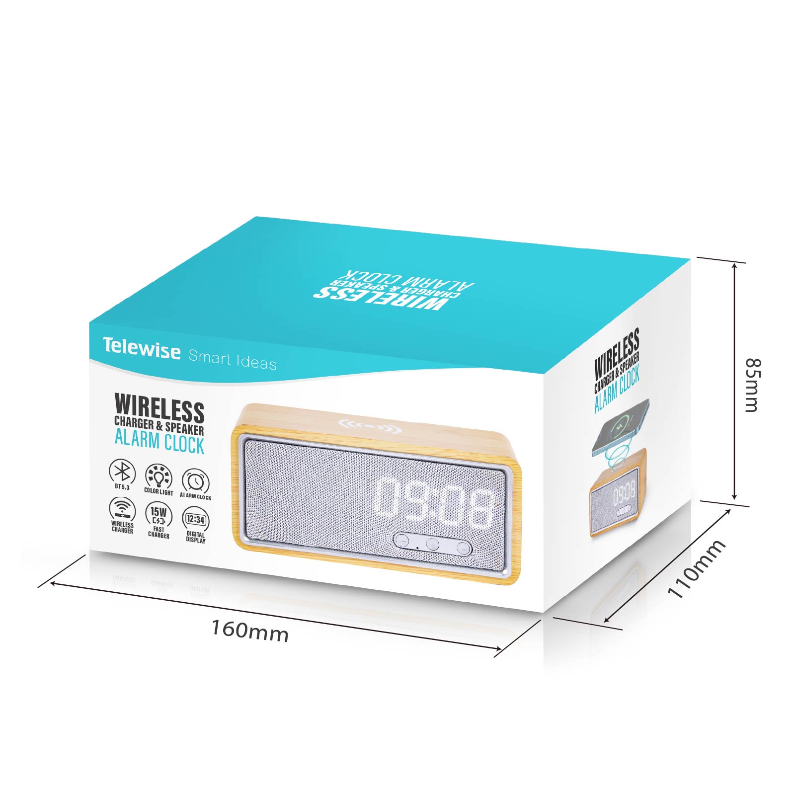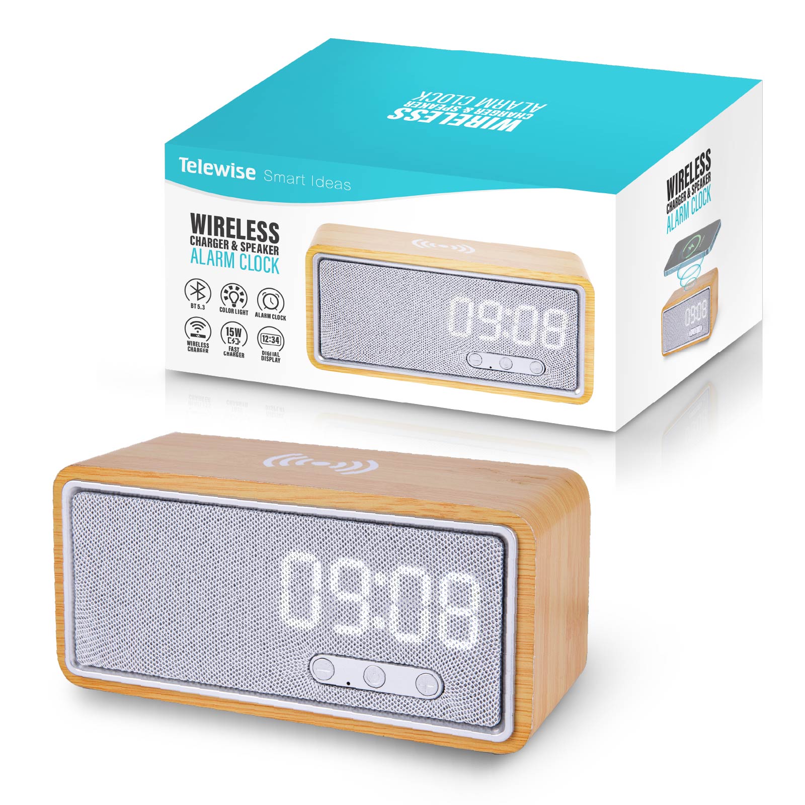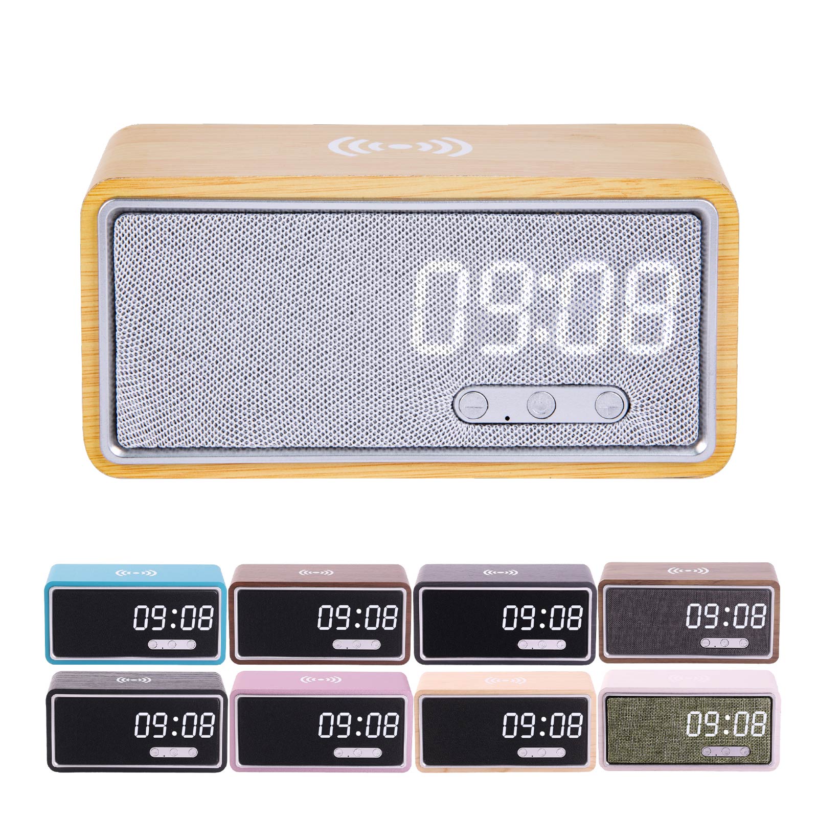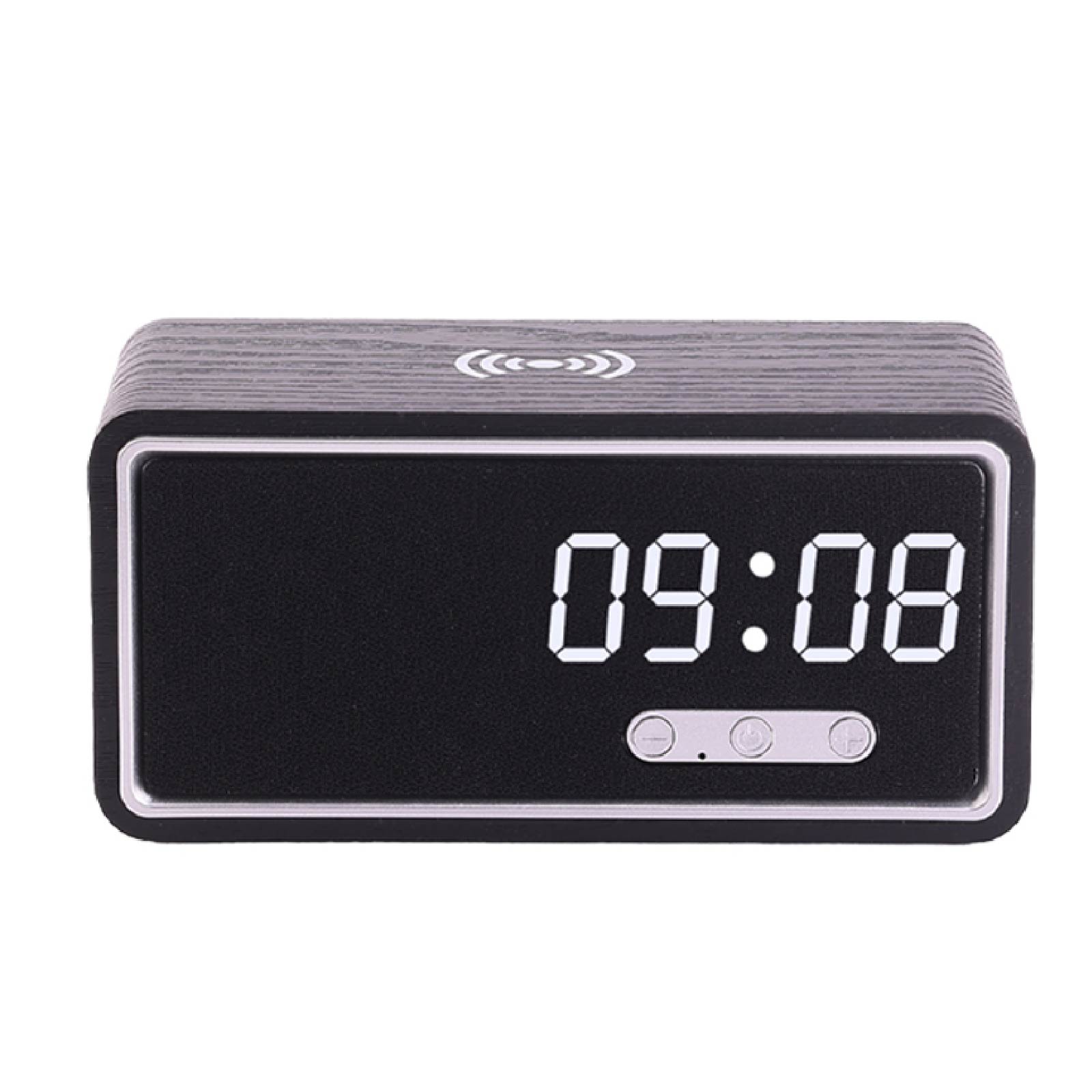 BT02-080Wireless Charger, Wireless Speaker, Alarm Clock, are integrated into one design.
