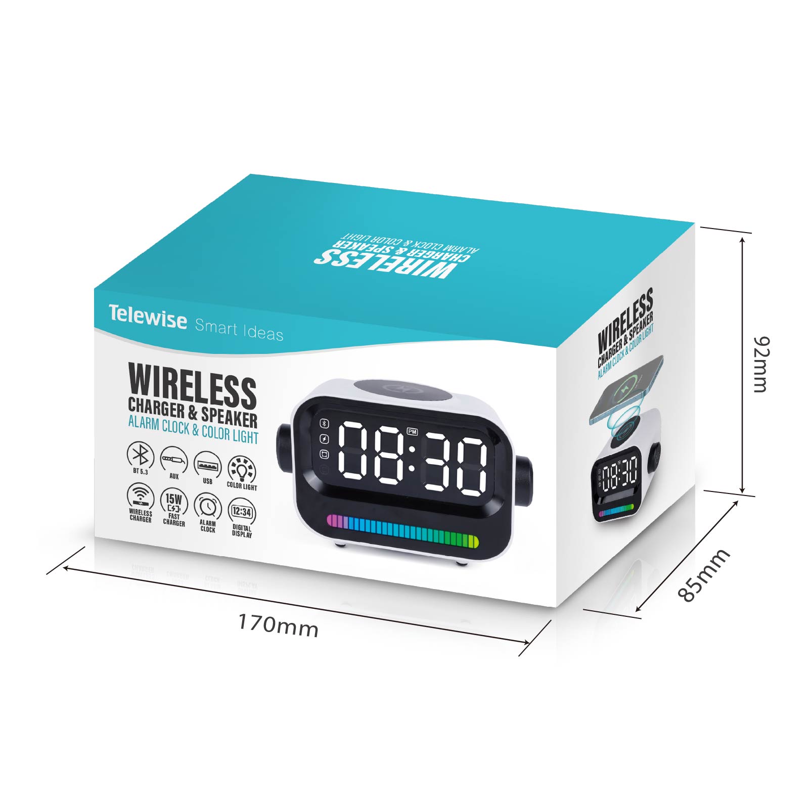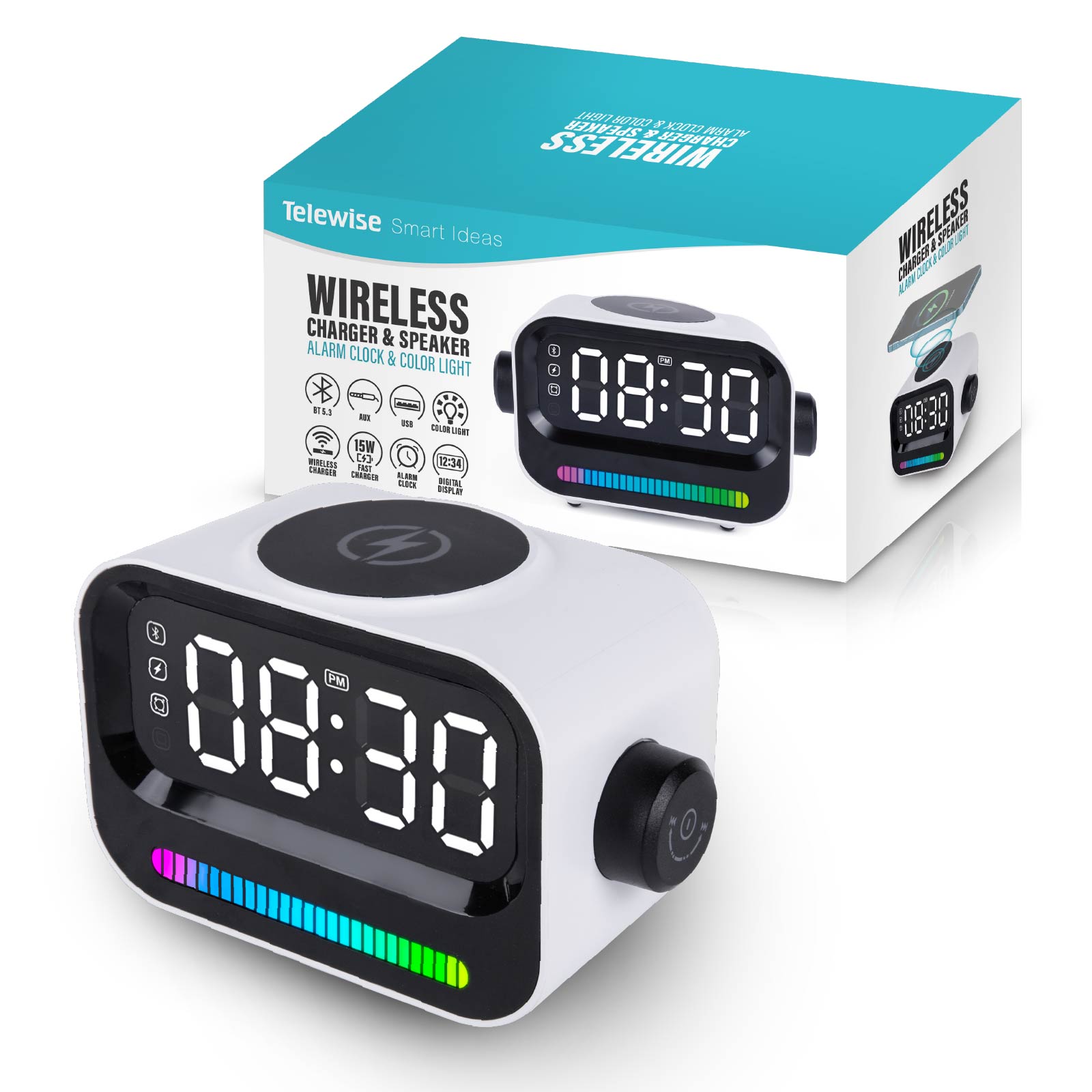 15W Wireless Charger & Led Speaker with Alarm Clock