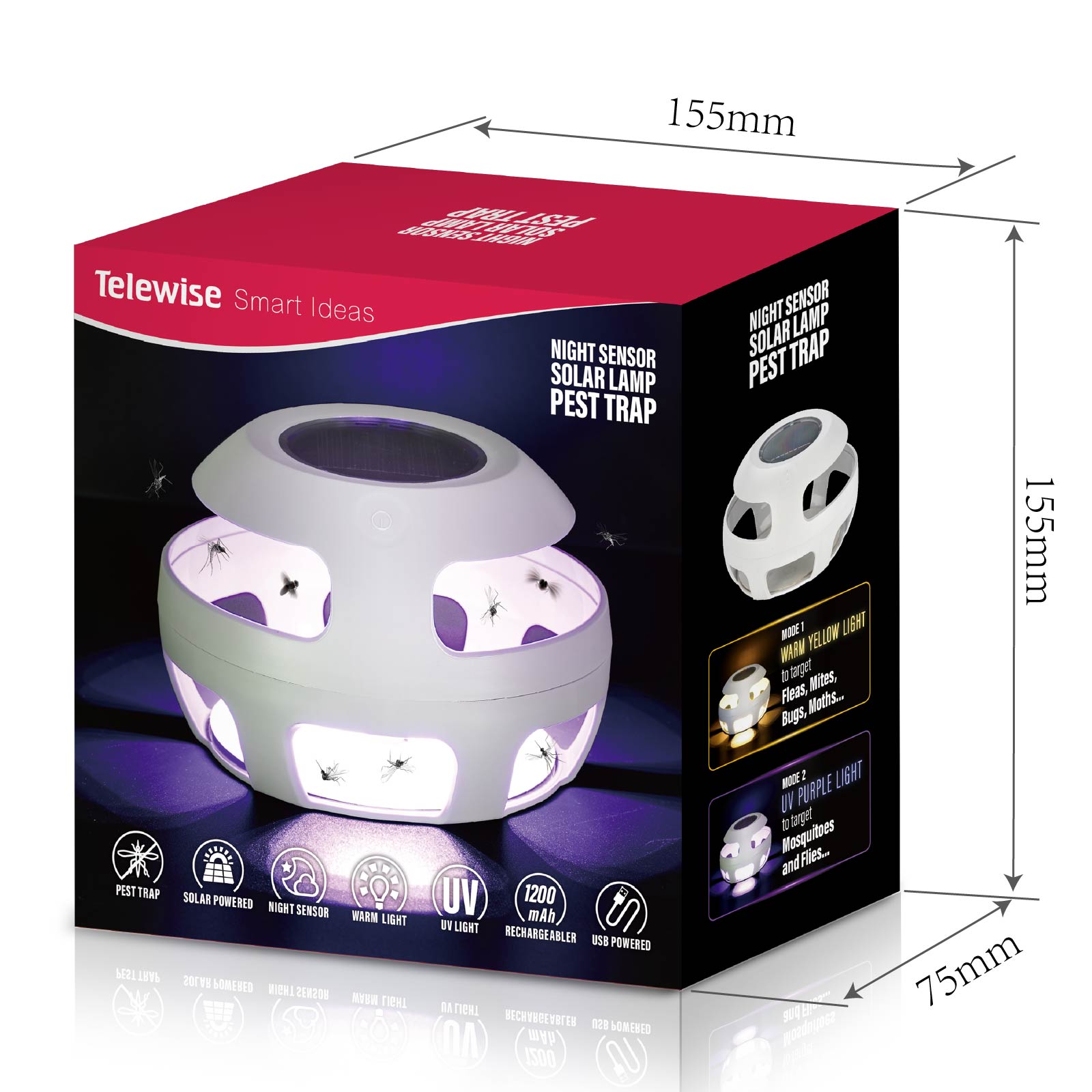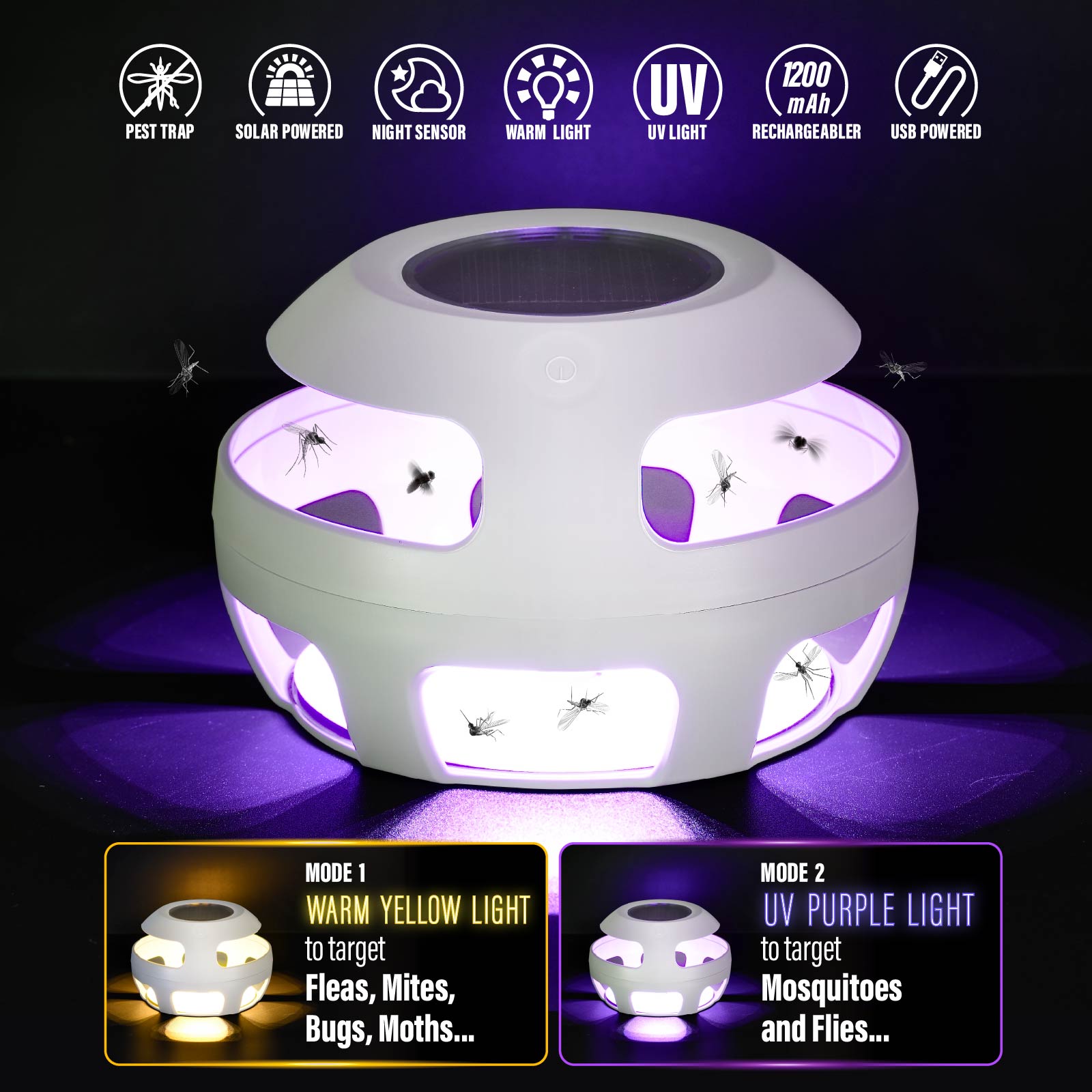 - Light Mode : Night Sensor, UV Light or Warm Light