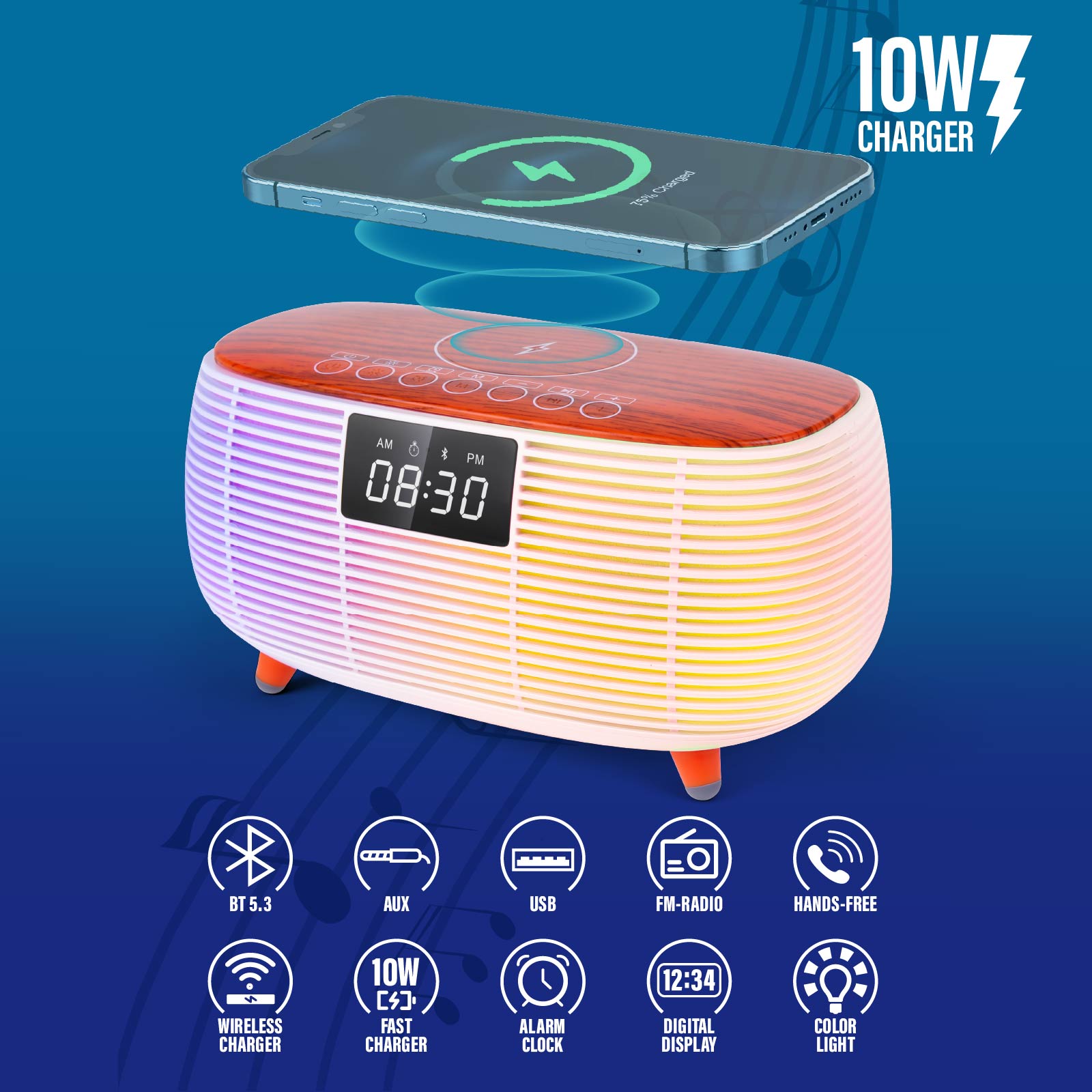 10W Wireless Charger & Led Speaker with Alarm Clock