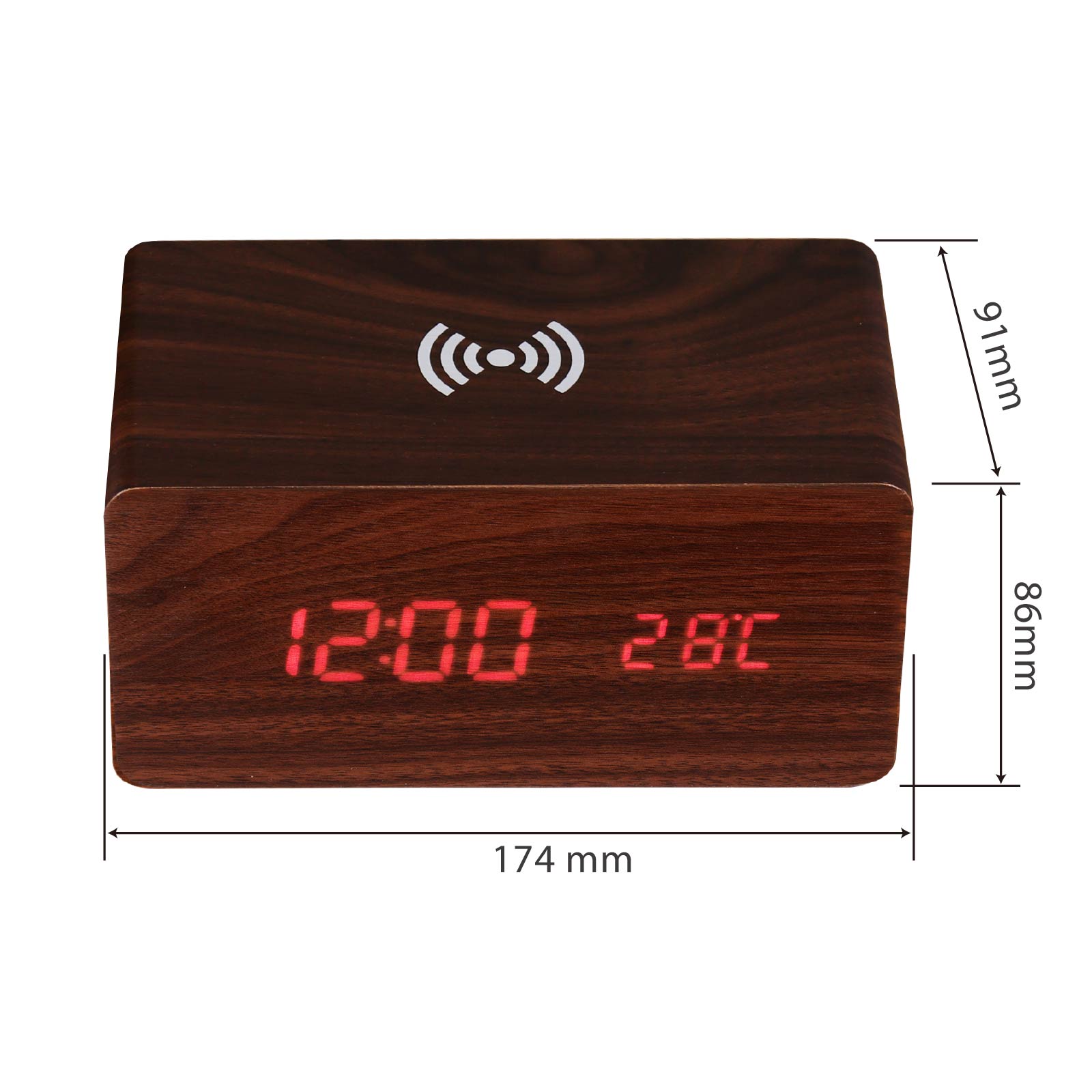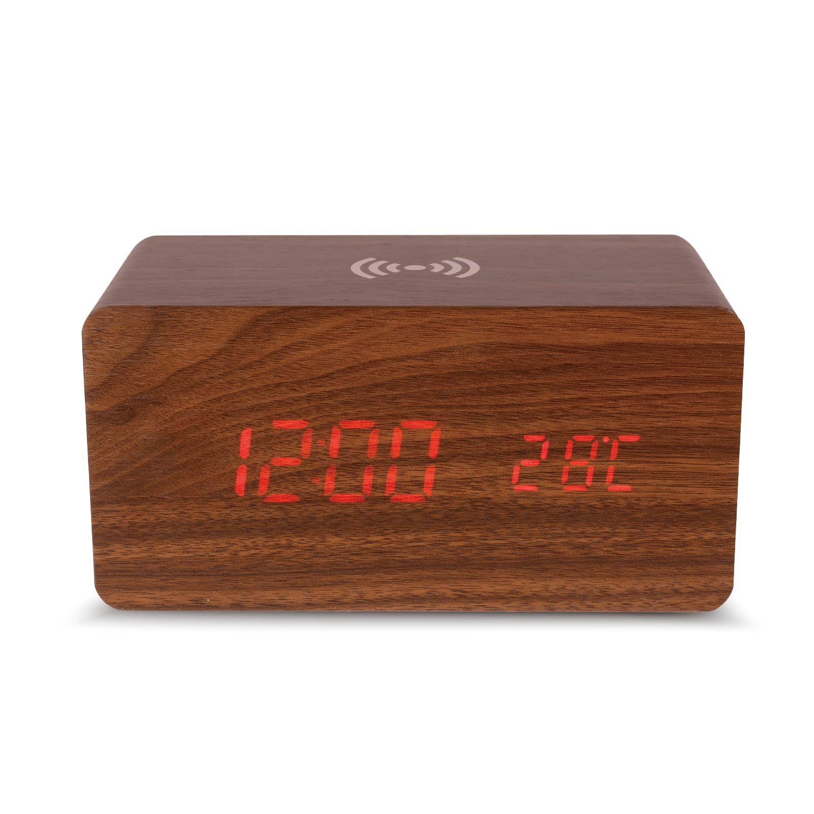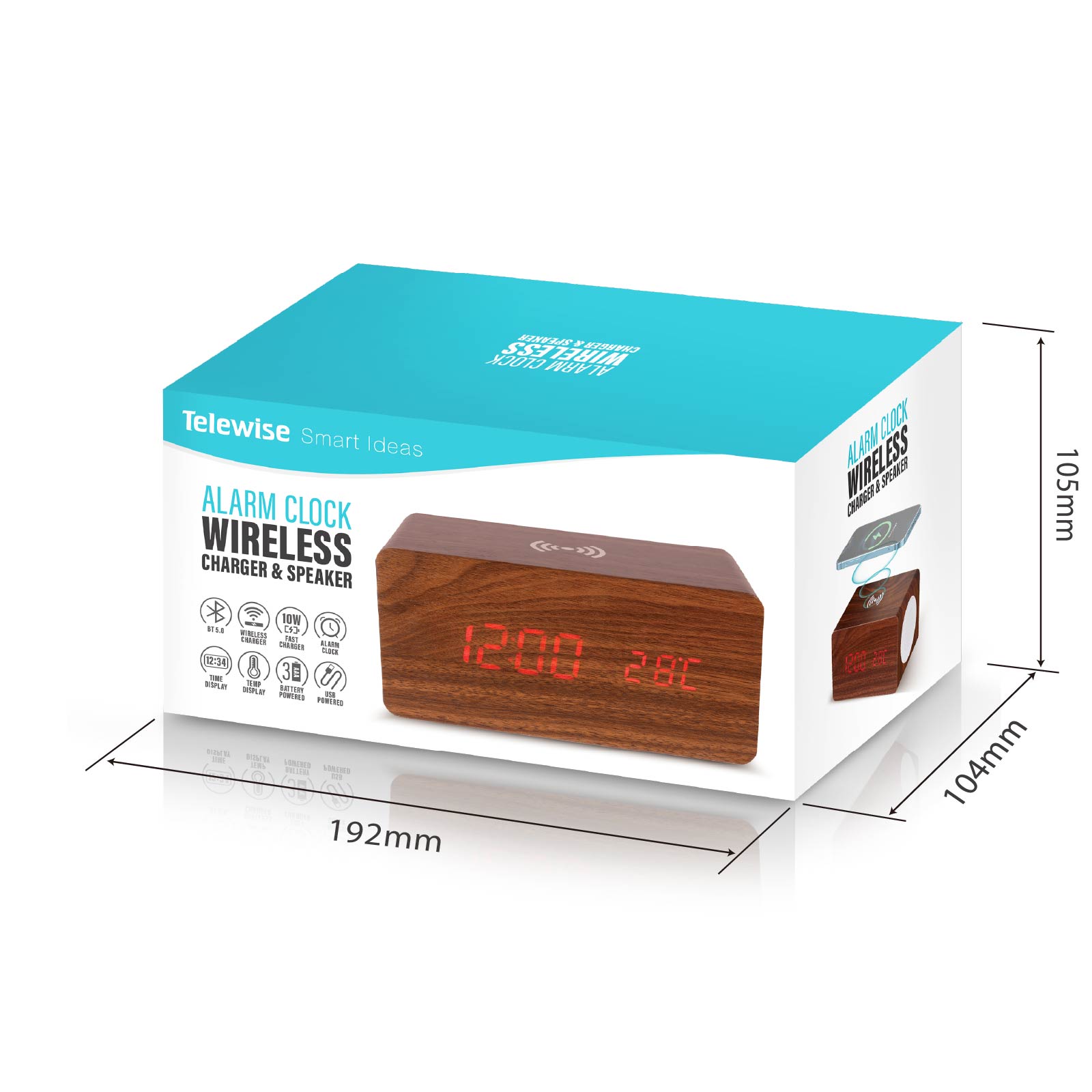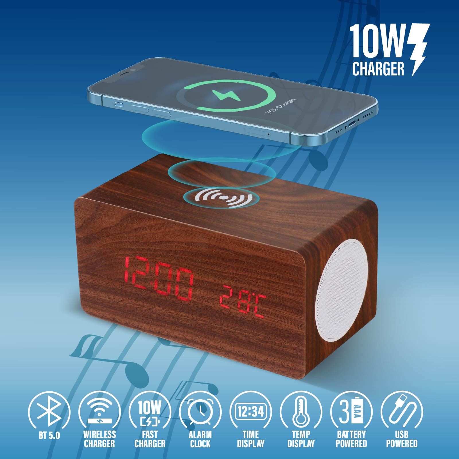 Wooden 10W Wireless Charger & Speaker with Alarm Clock