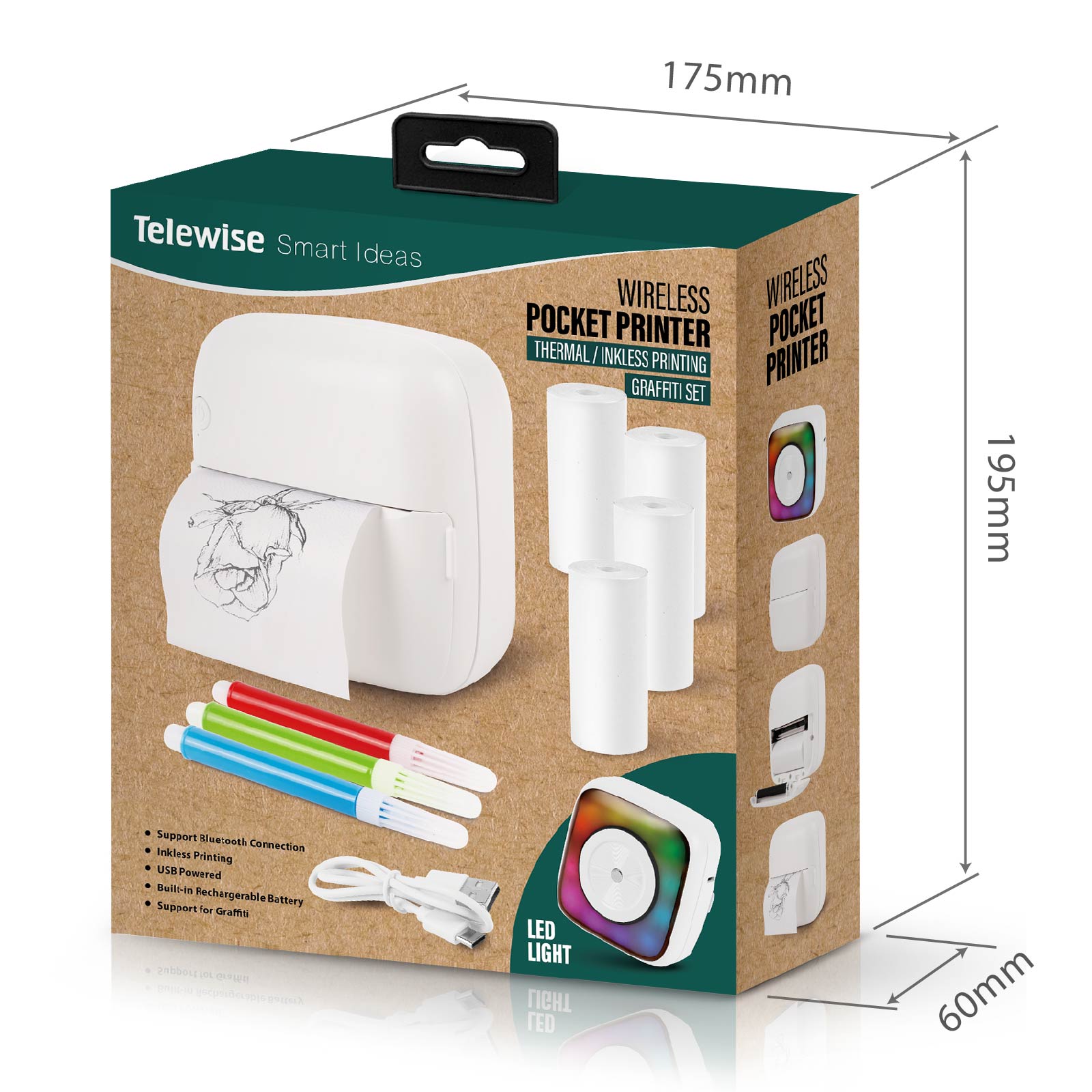 Wireless Pocket Printer Graffiti Set with Led Color Light