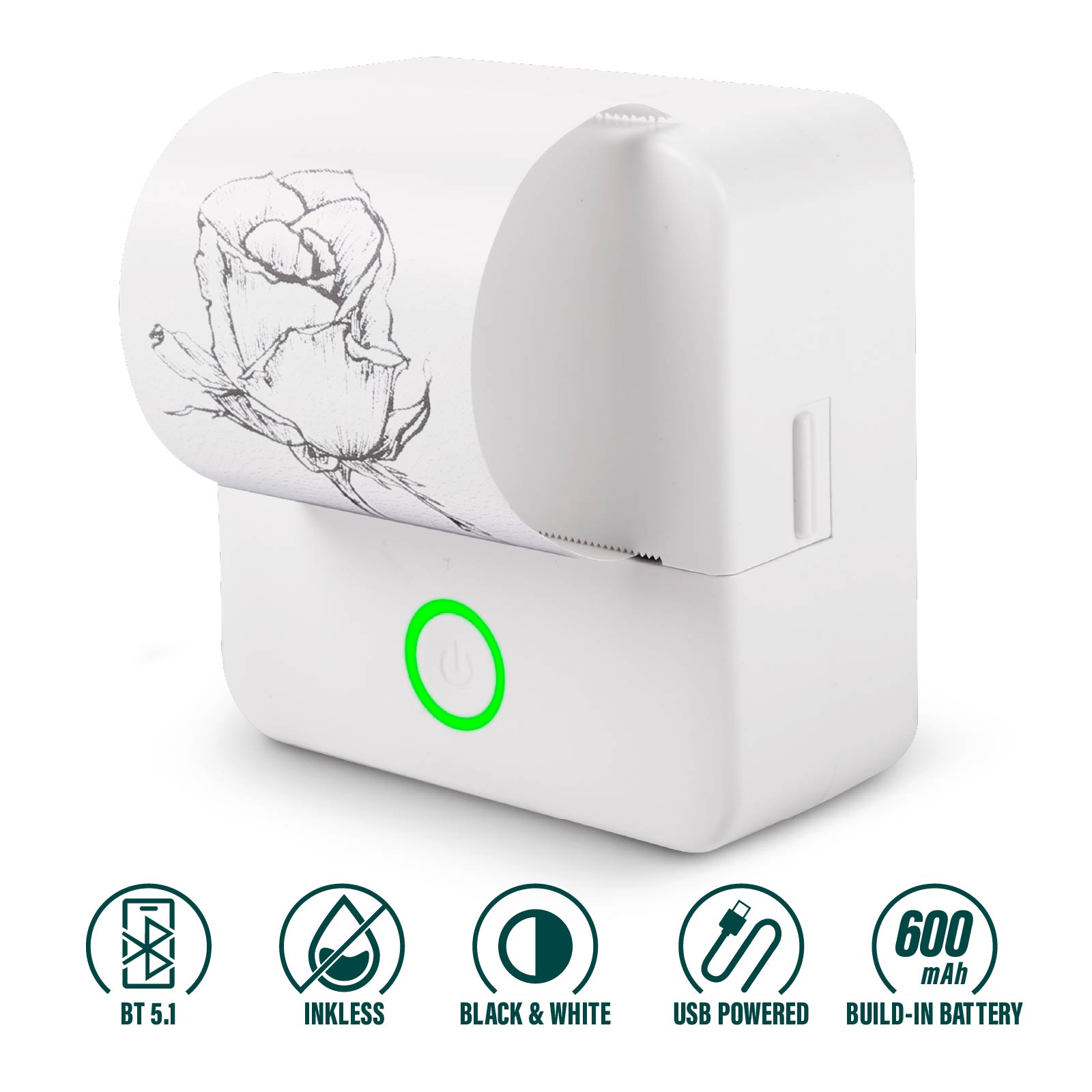 - Function : Support Bluetooth Connection, Inkless Printing, Support for graffiti, Built-in Rechargerable Battery, USB Powered