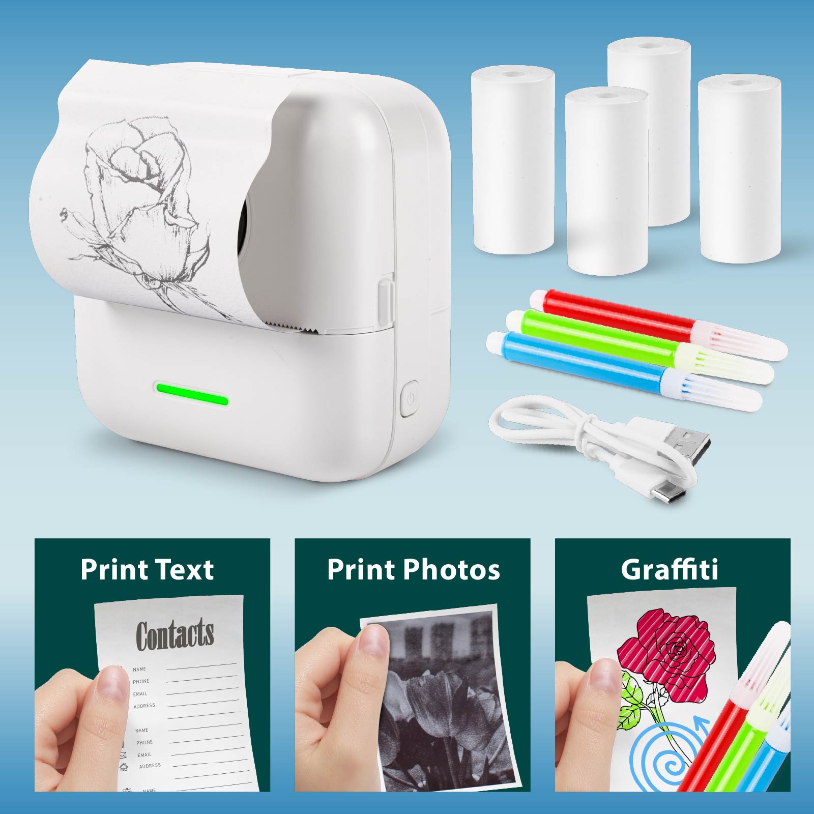 - Function : Support Bluetooth Connection, Inkless Printing, Support for graffiti, Built-in Rechargerable Battery, USB Powered