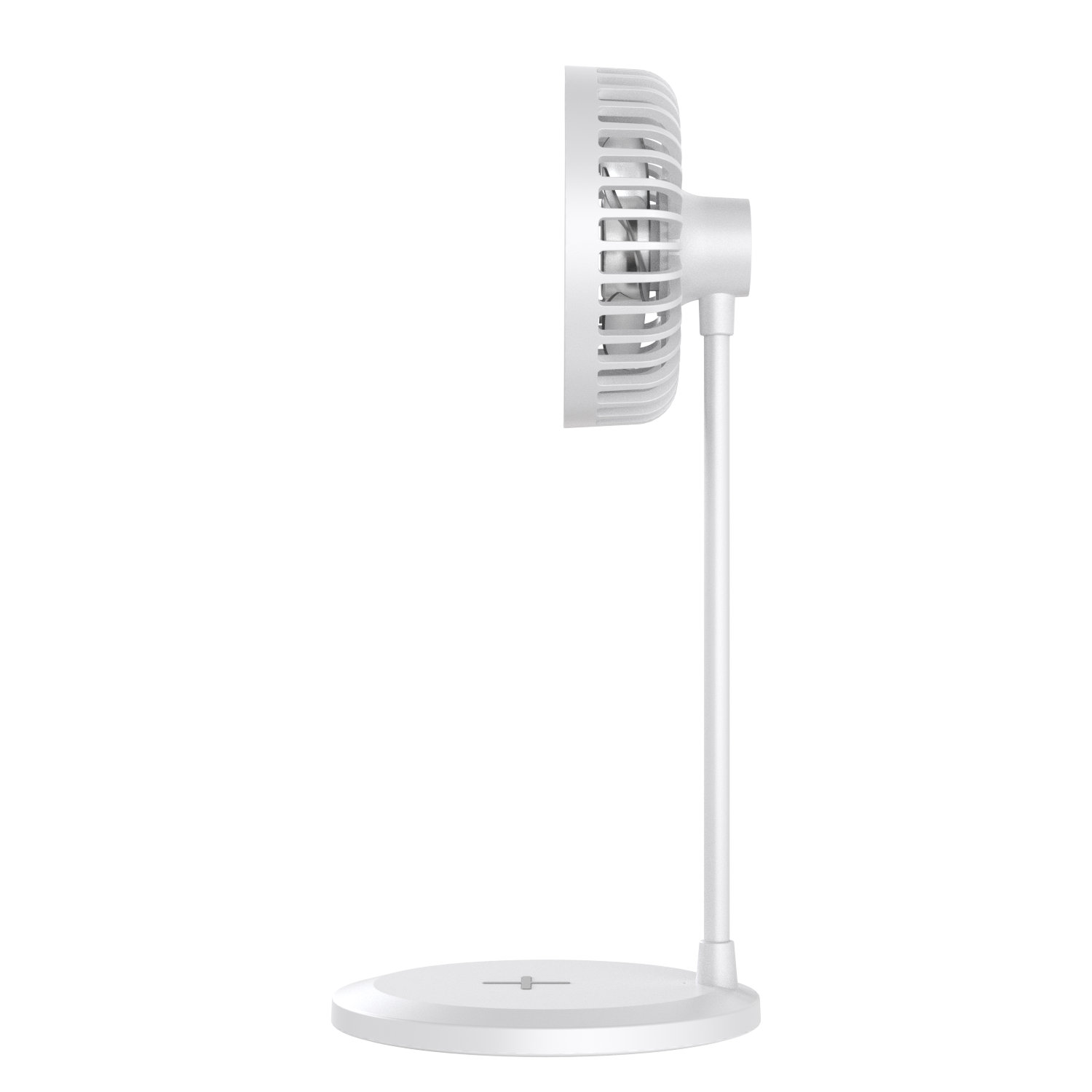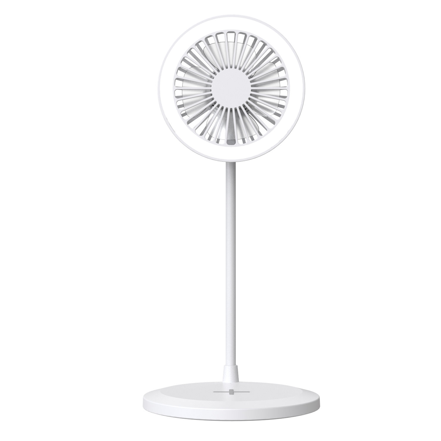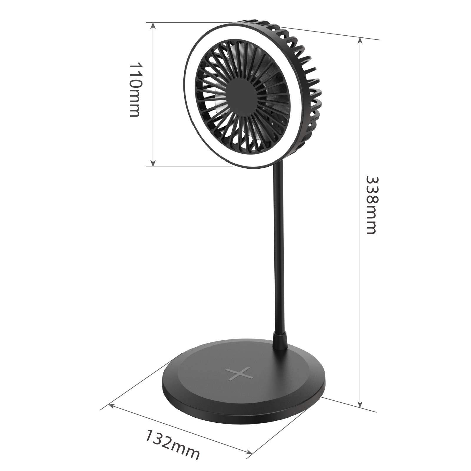 WC10-028All-in-one multi-purpose wireless charger, with desktop fan & led night light, adjustable hose; 15W output ,meet the charging demand, quickly and safety charge.