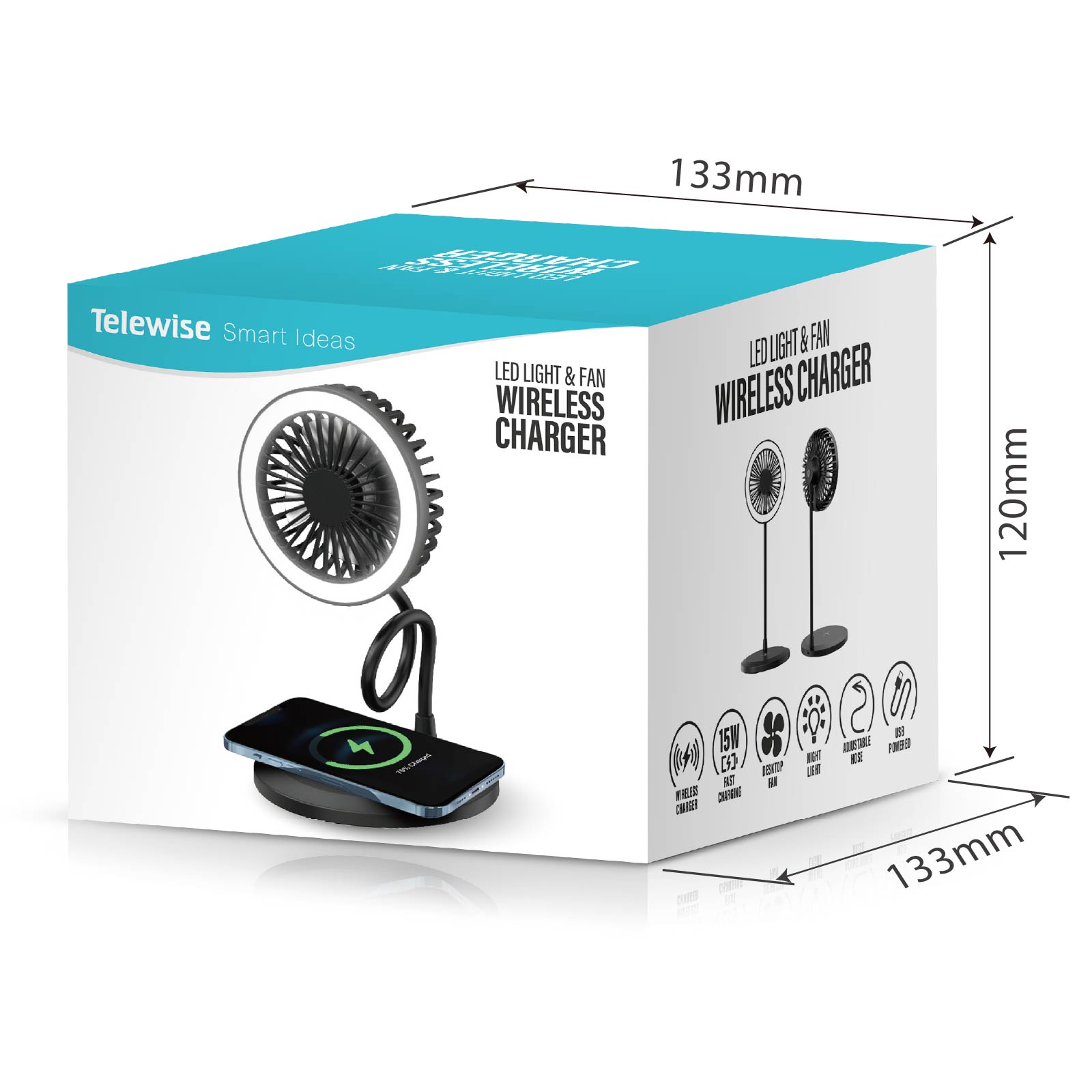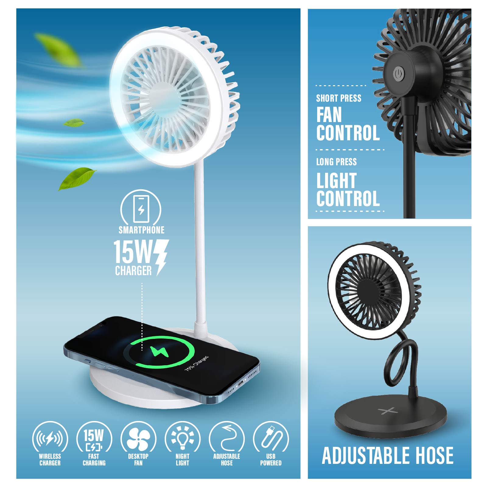 - Function : Wireless Charger, Led Light, Desktop Fan, Adjustable Hose, USB Powered
