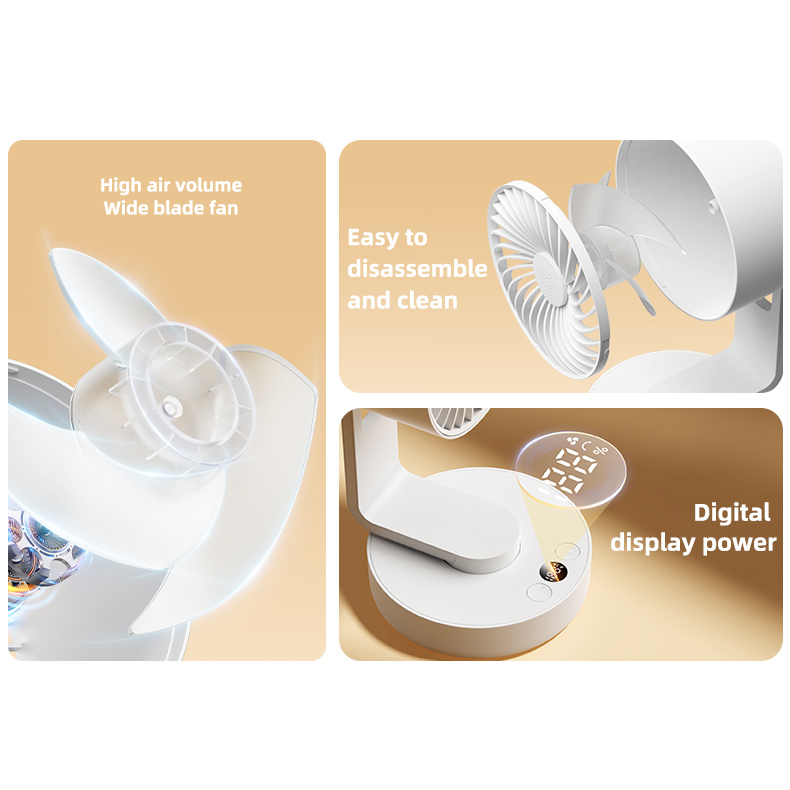 - Function : Fan Speed Adjustment, 120° Horizontal Rotation, 110º Manual Vertical Angle Adjustable,Battery Digital Display, Night Night, USB Powered, Build-in Rechargeable Battery.