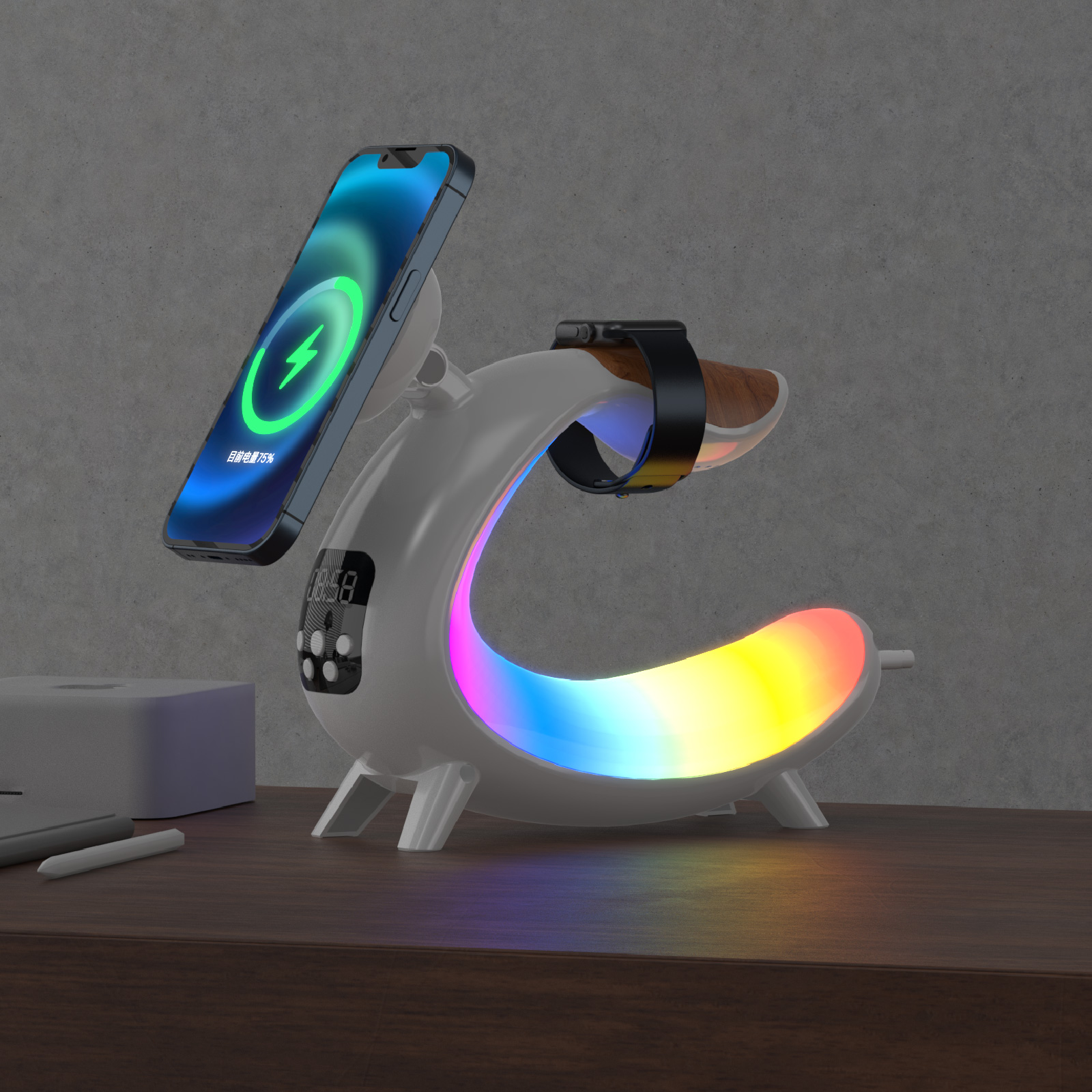 Multifunction Wireless Charging Station Color Light Wireless Speaker