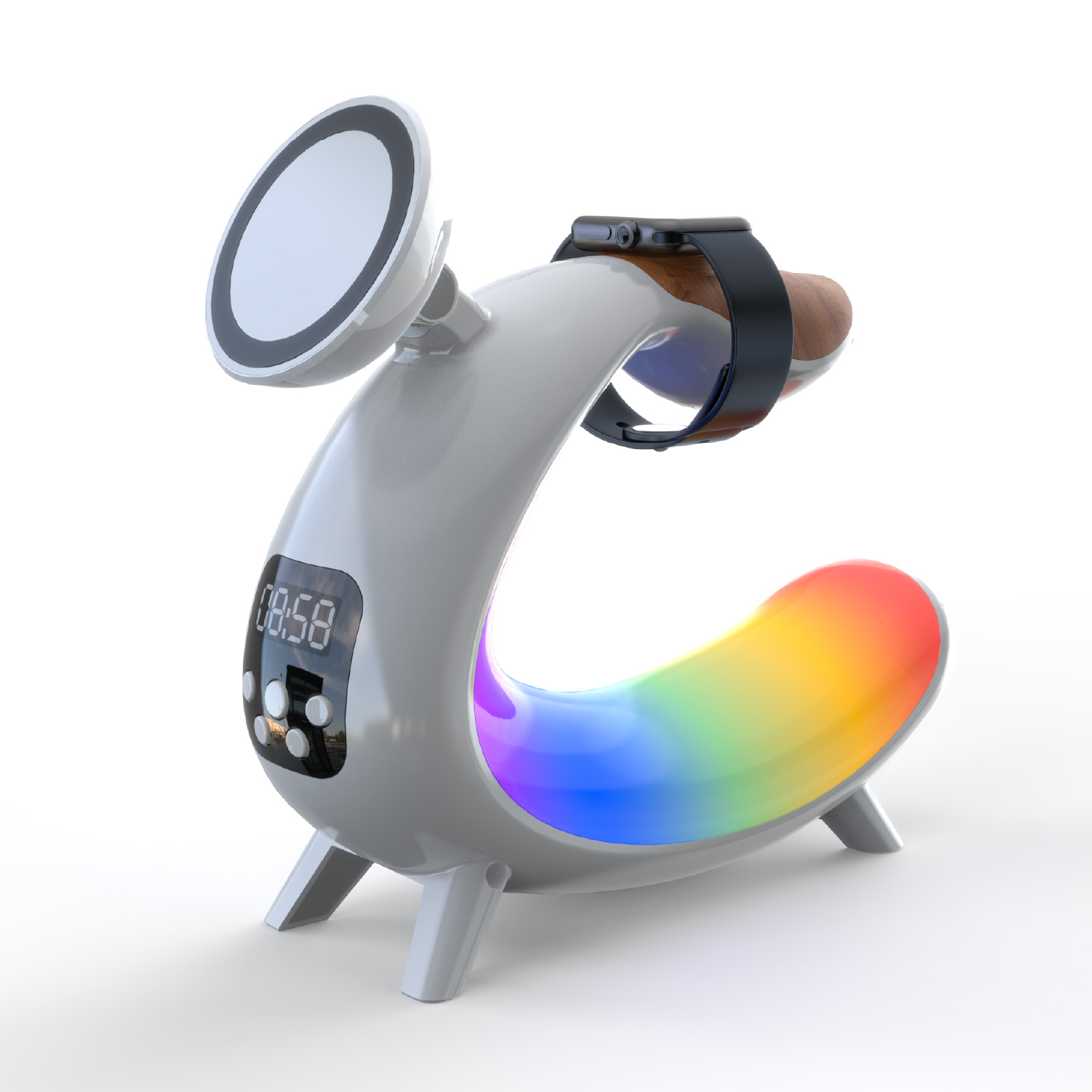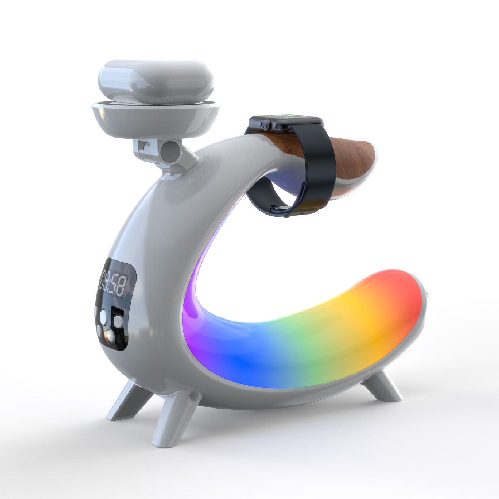 - Function : Bluetooth, RGB Light, Wireless Charger, Alarm Clock, Time Display