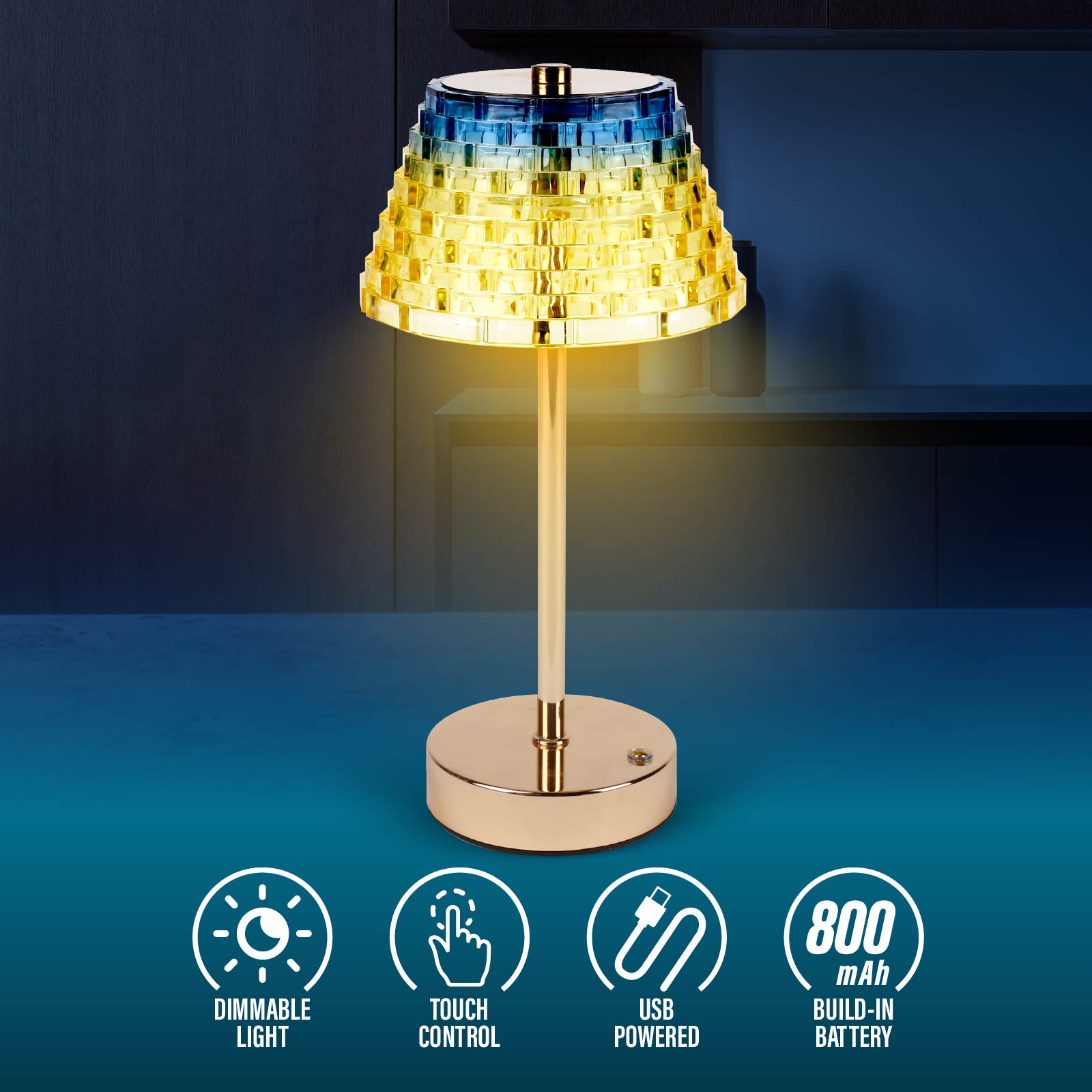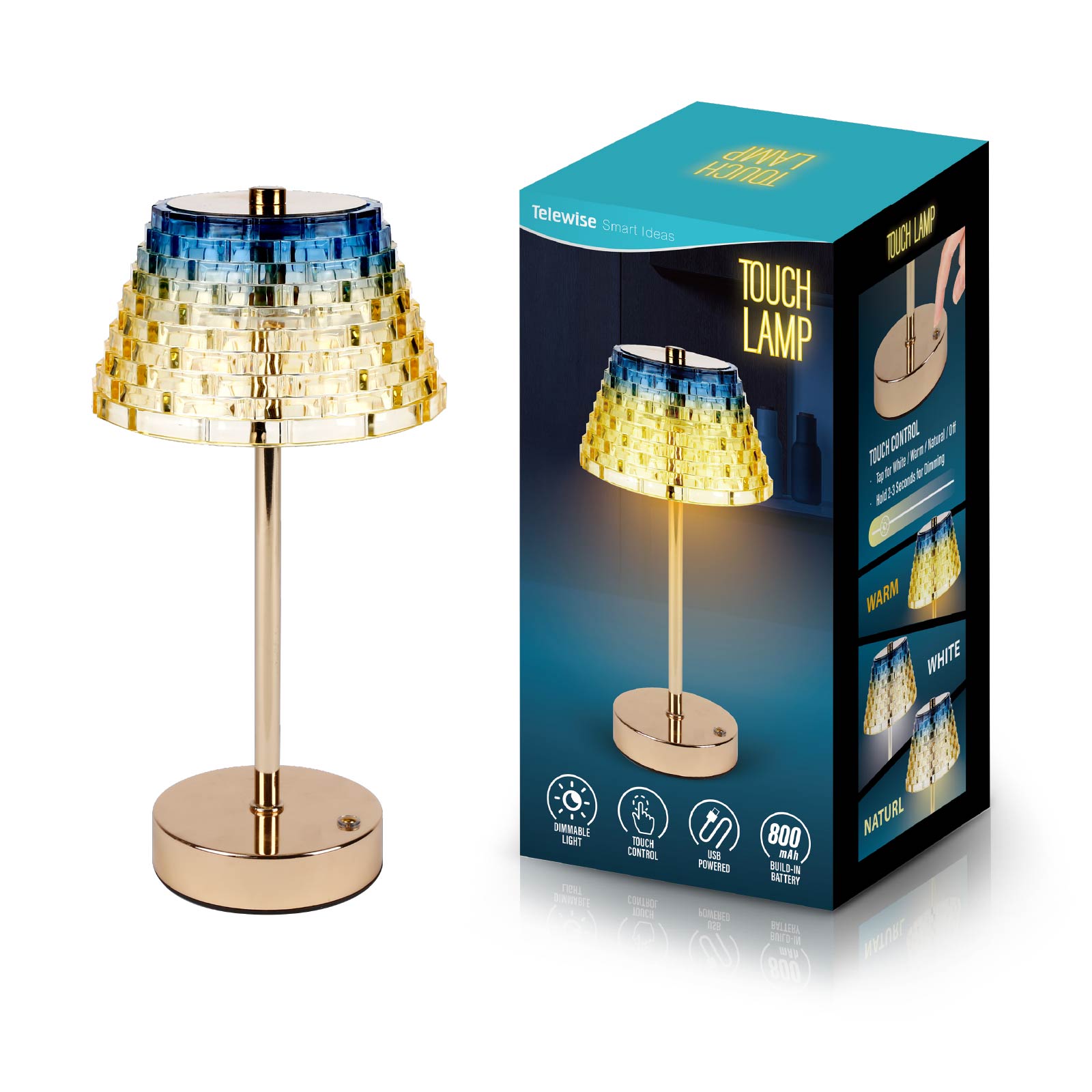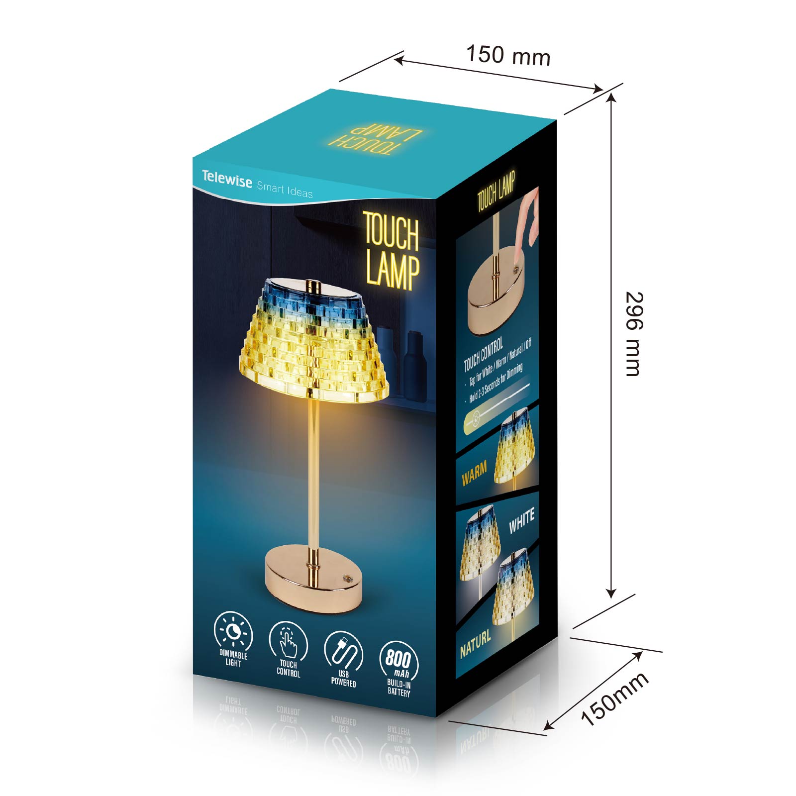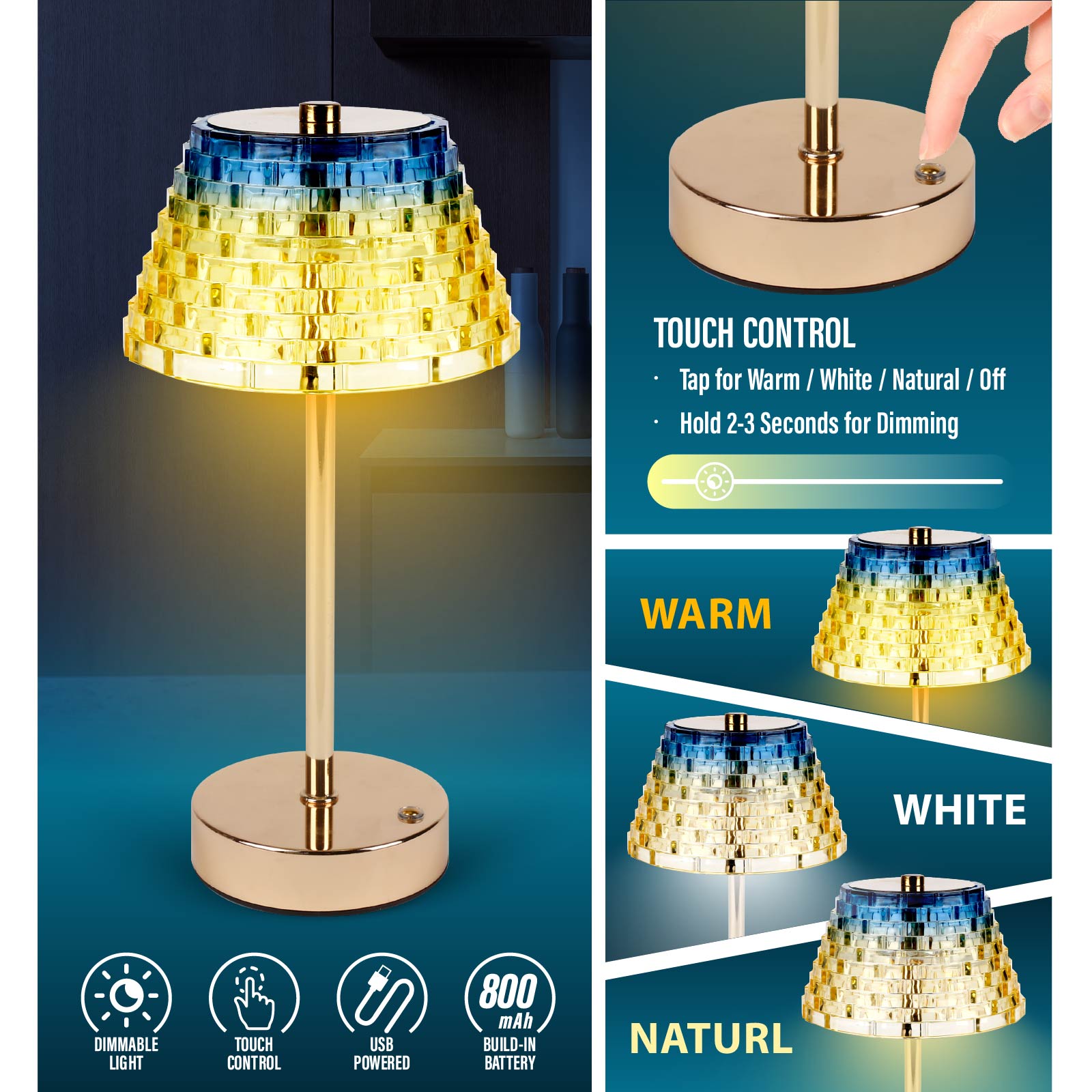 - Function : Touch Control, Dimmable Light, USB Powered, Build-in Rechargeable Battery.