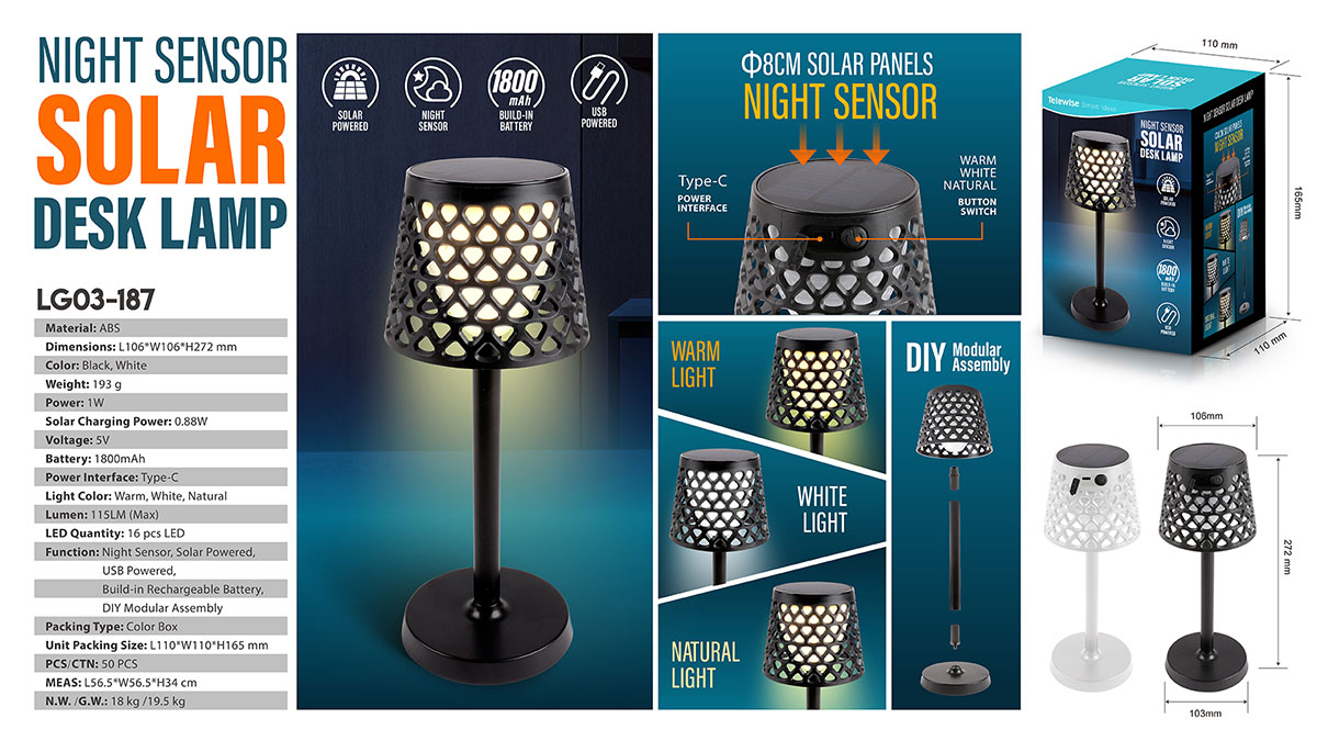 Night Sensor Solar Desktop Lamp