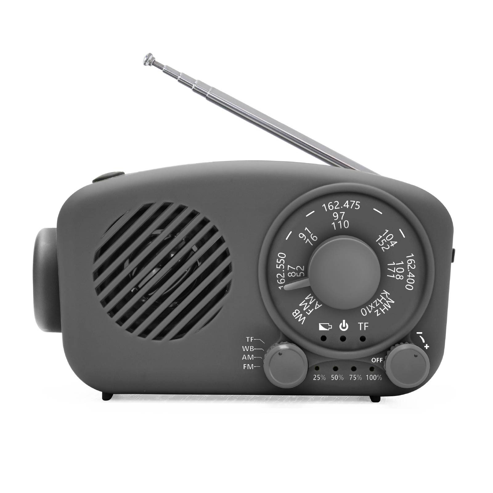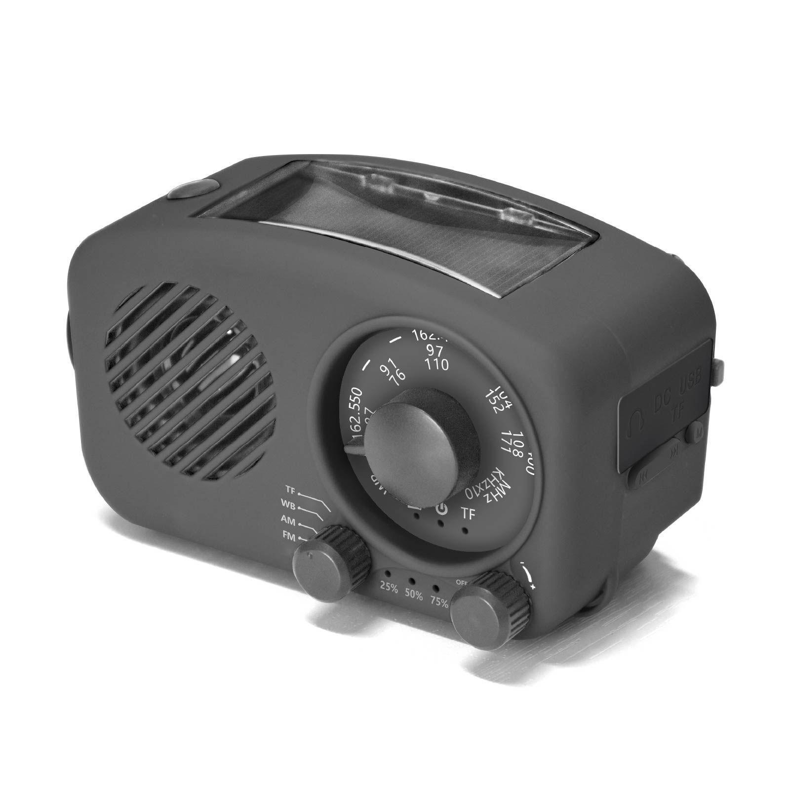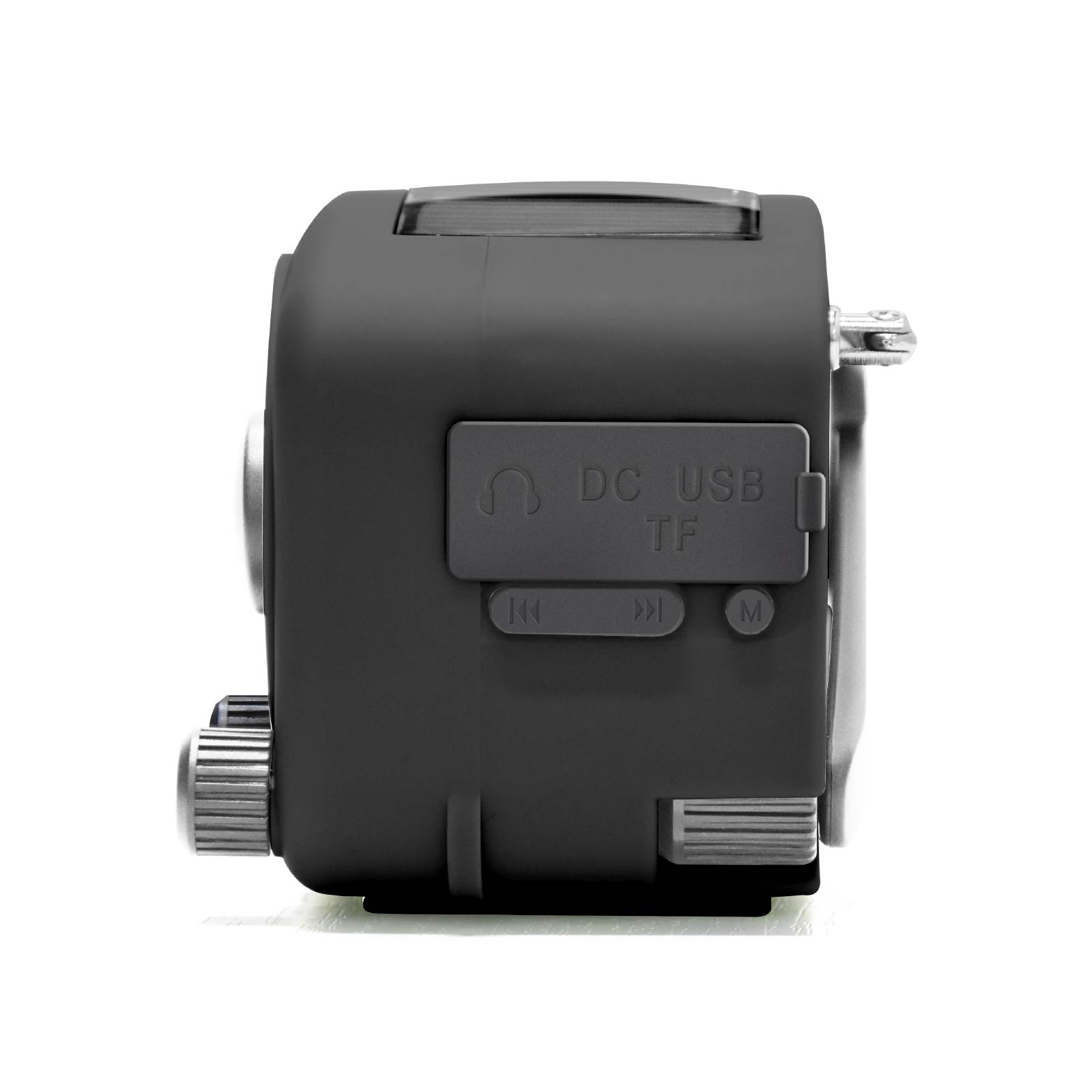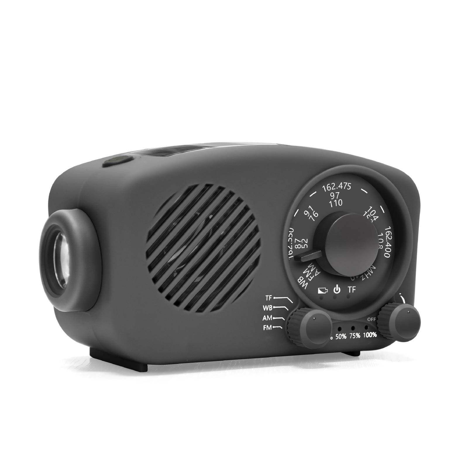 - Functions : Bluetooth Speaker, AM/FM/WB Radio(WB is only for US), TF Card Slot, LED Torch, SOS Alarm, Earphone Jack, Power Bank, Solar Charging, Hand Crank Charging, USB Charging