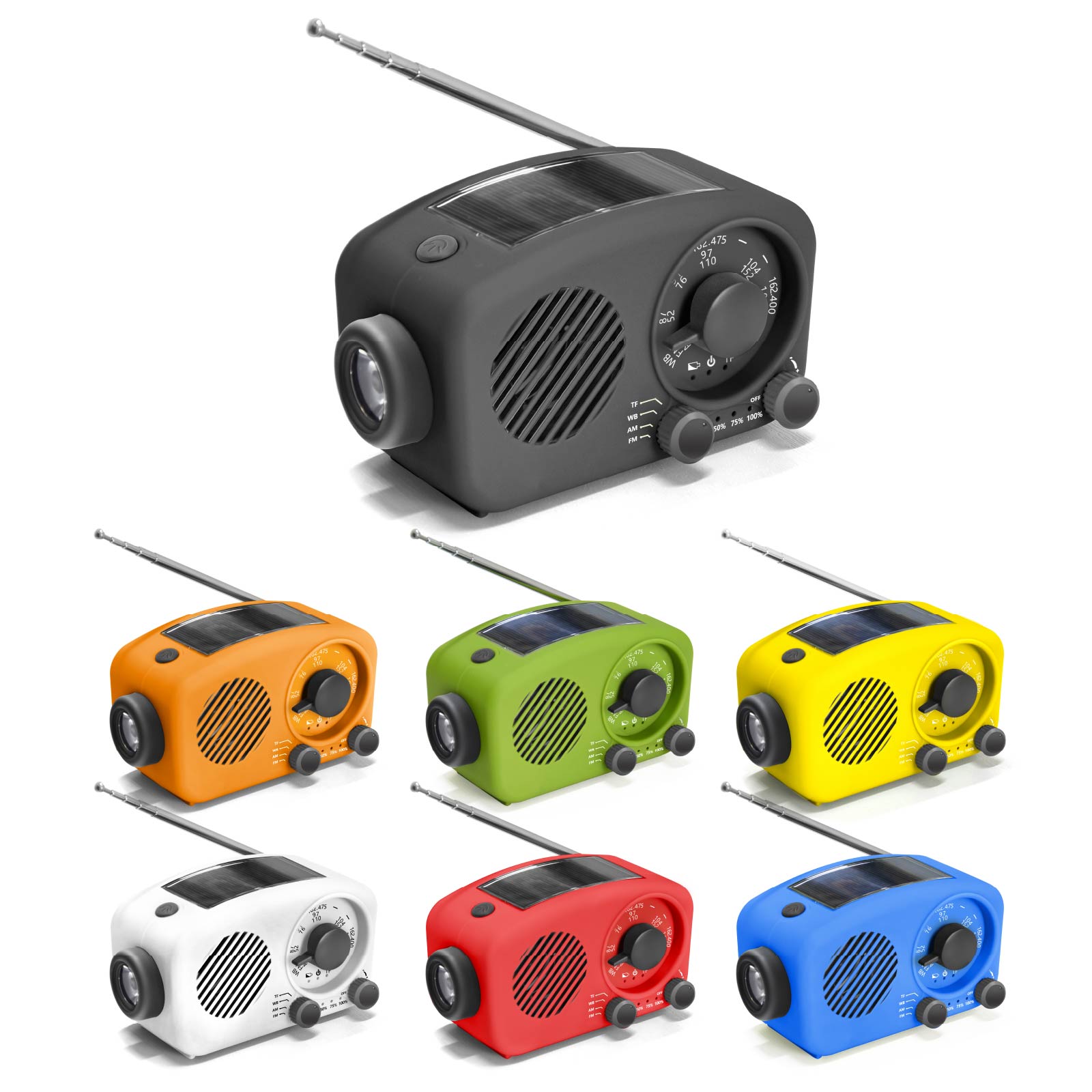 RA01-005It's an emergency radio equipped with solar power, supports NOAA/AM/FM weather radio functions. With Solar Charging, Hand Crank Charging, USB Charging, Power Bank. It also features a flashlight, an LED reading light, an SOS alarm, and so on. A must-have for various outdoor and emergency situations!