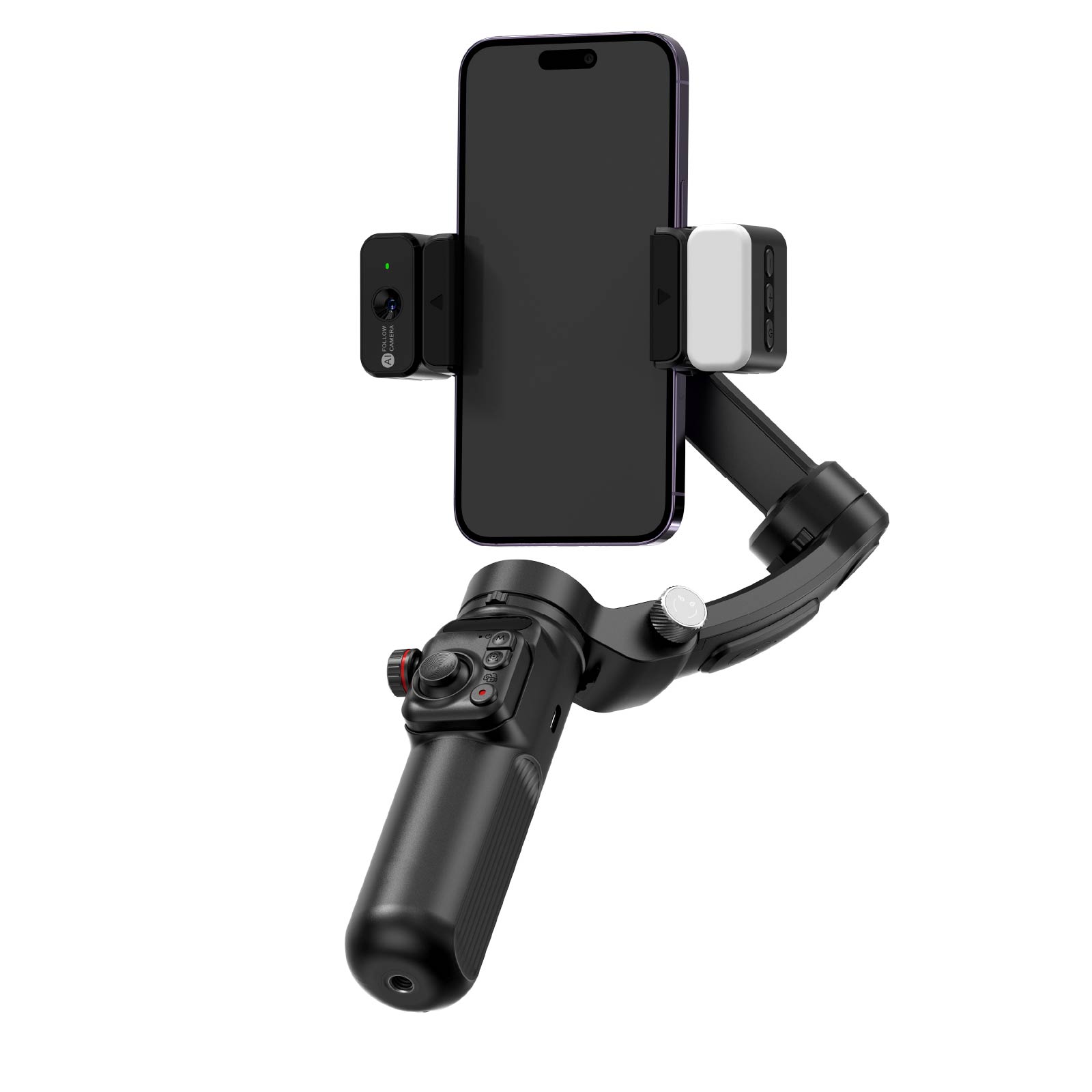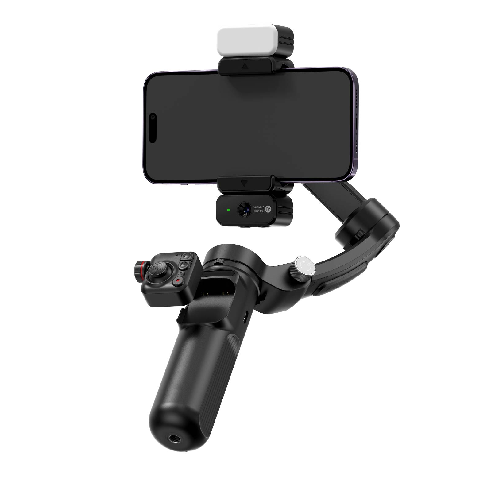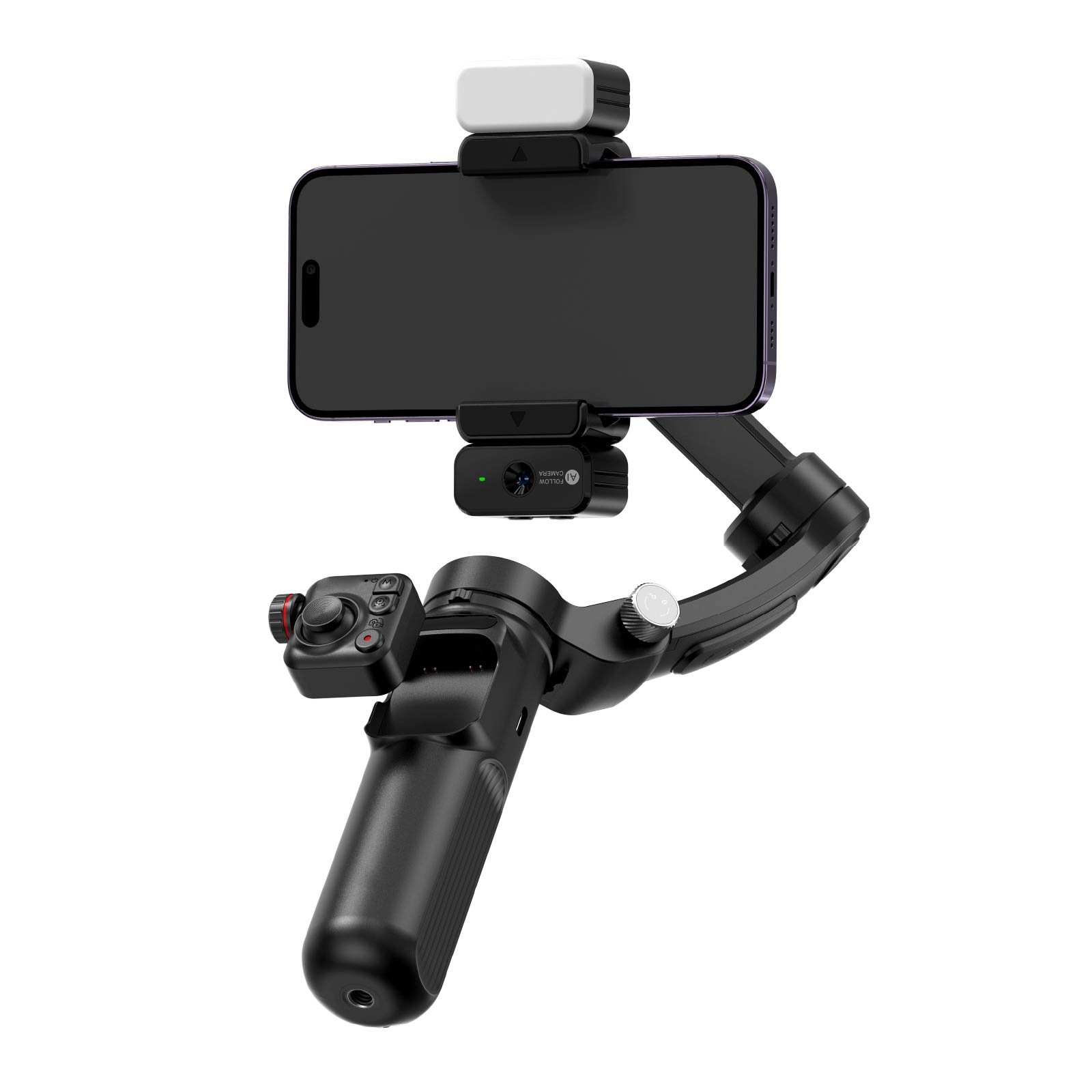 - Function : Equipped with AI-Follow Camera, Magnetic Fill Light, Detachable Microphone, Multi - function Buttons, Foldable & Portable, 3 - Axis Stability Anti - shake, Detachable Remote Control, Smart Follow Target Tracking, Joystick for Free Operation, Smart App, USB Powered.