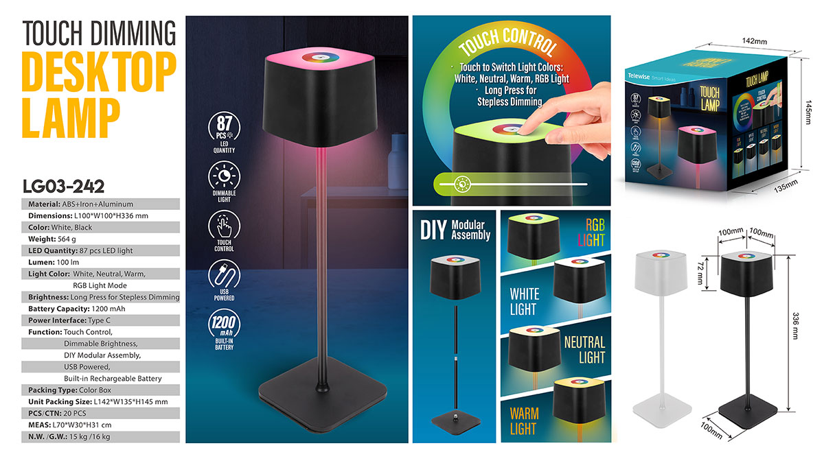 - Function : Touch Control, Dimmable Light, DIY Modular Assembly, USB Powered, Built-in Rechargeable Battery.