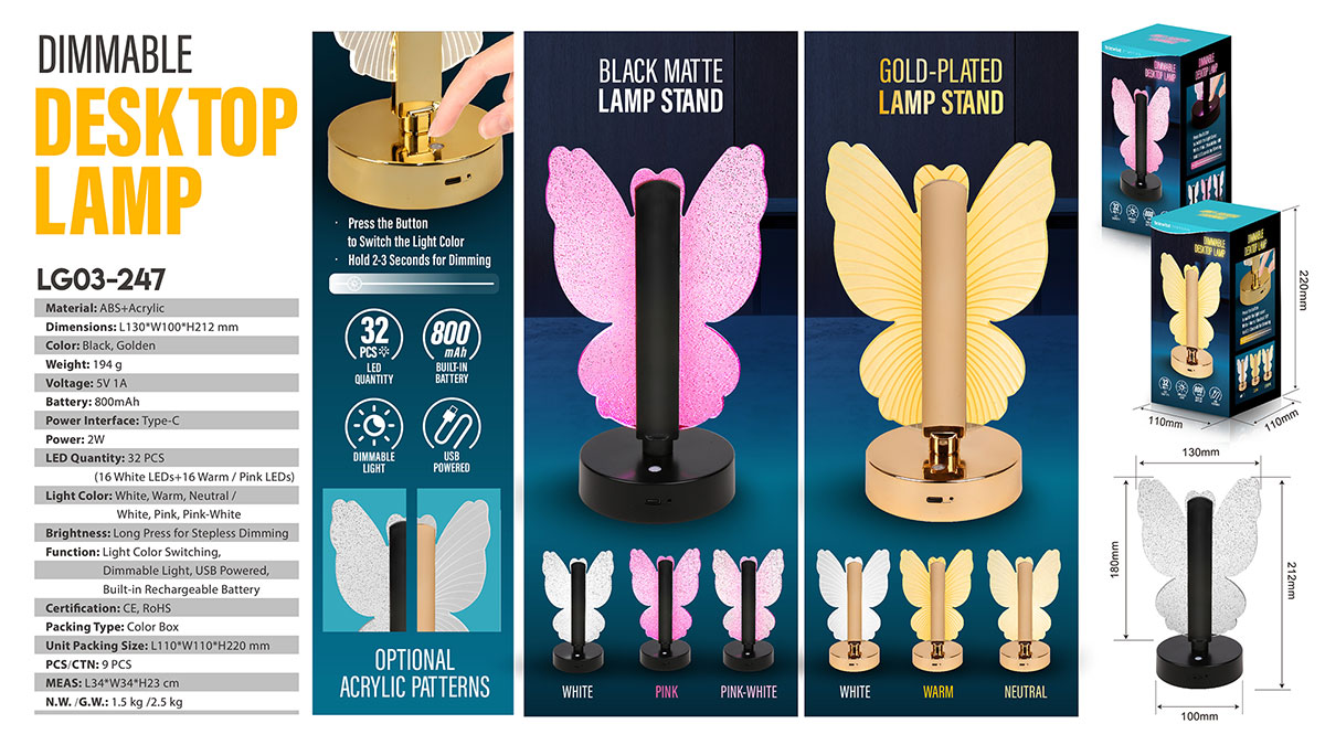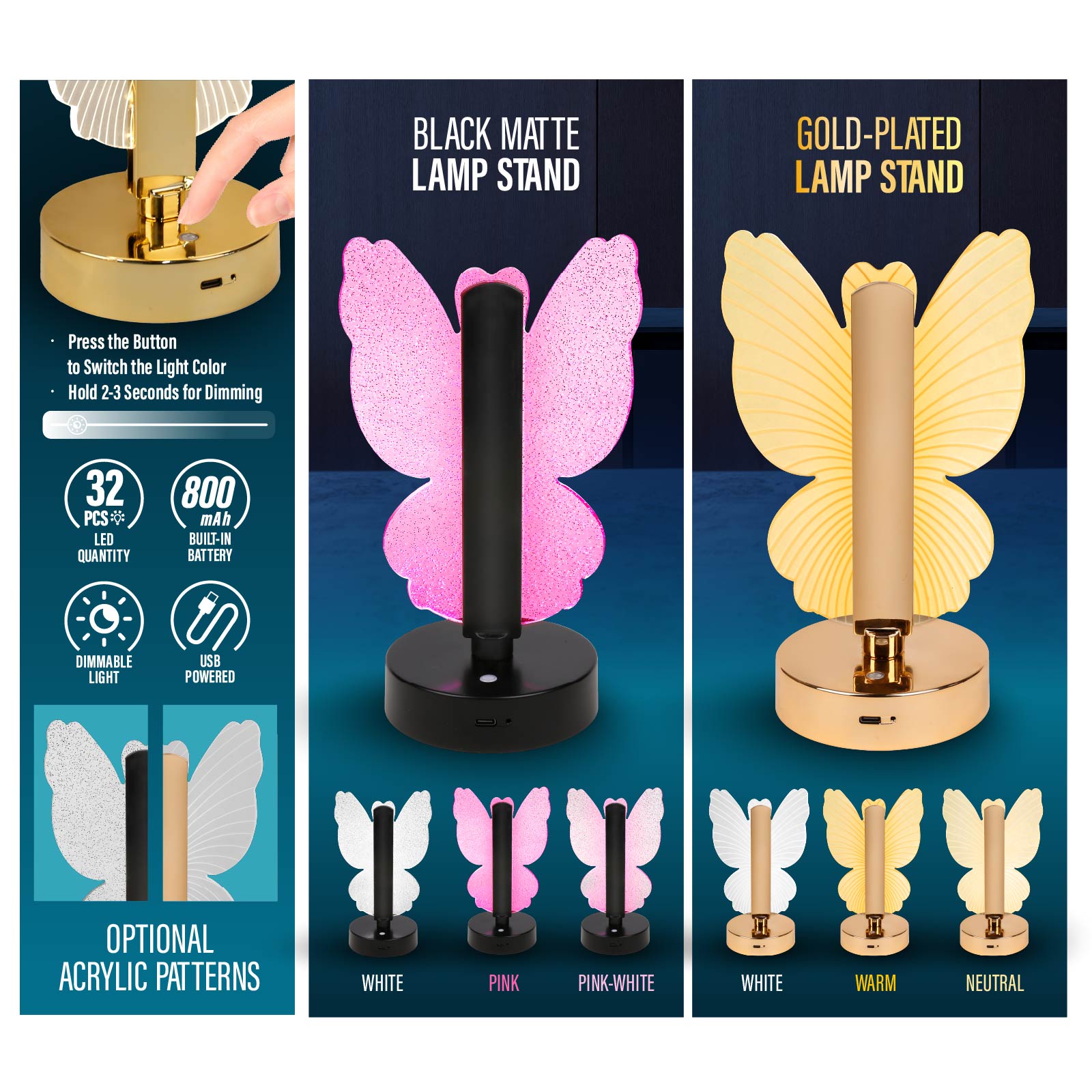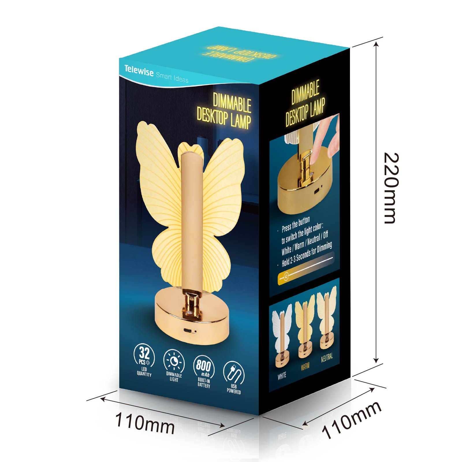Cordless Dimming Desktop Lamp (Acrylic Butterfly)