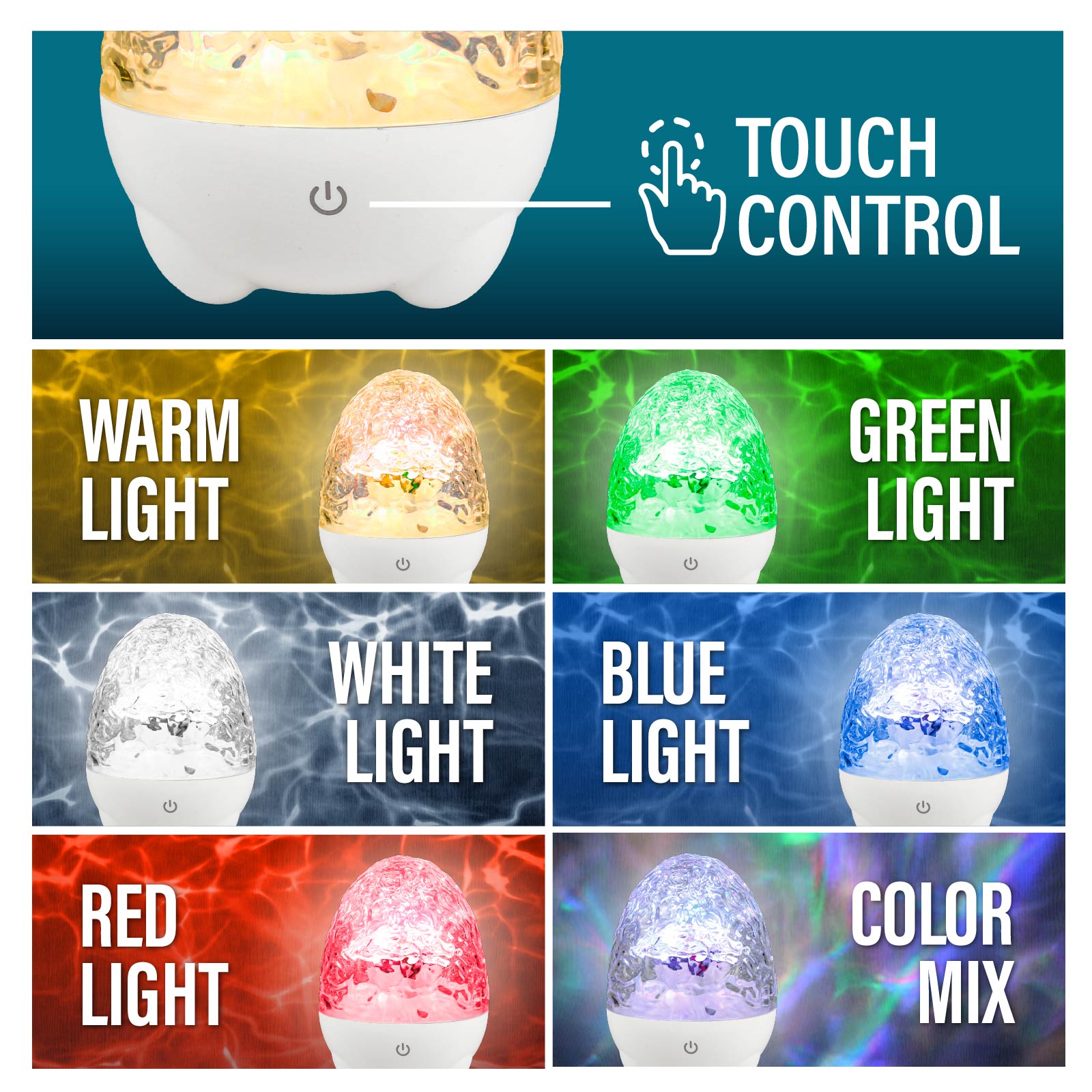 - Light Mode : Moving Water Ripple Light (Warm, White, Red, Green, Blue, Color Mix, Gradient Flow)
