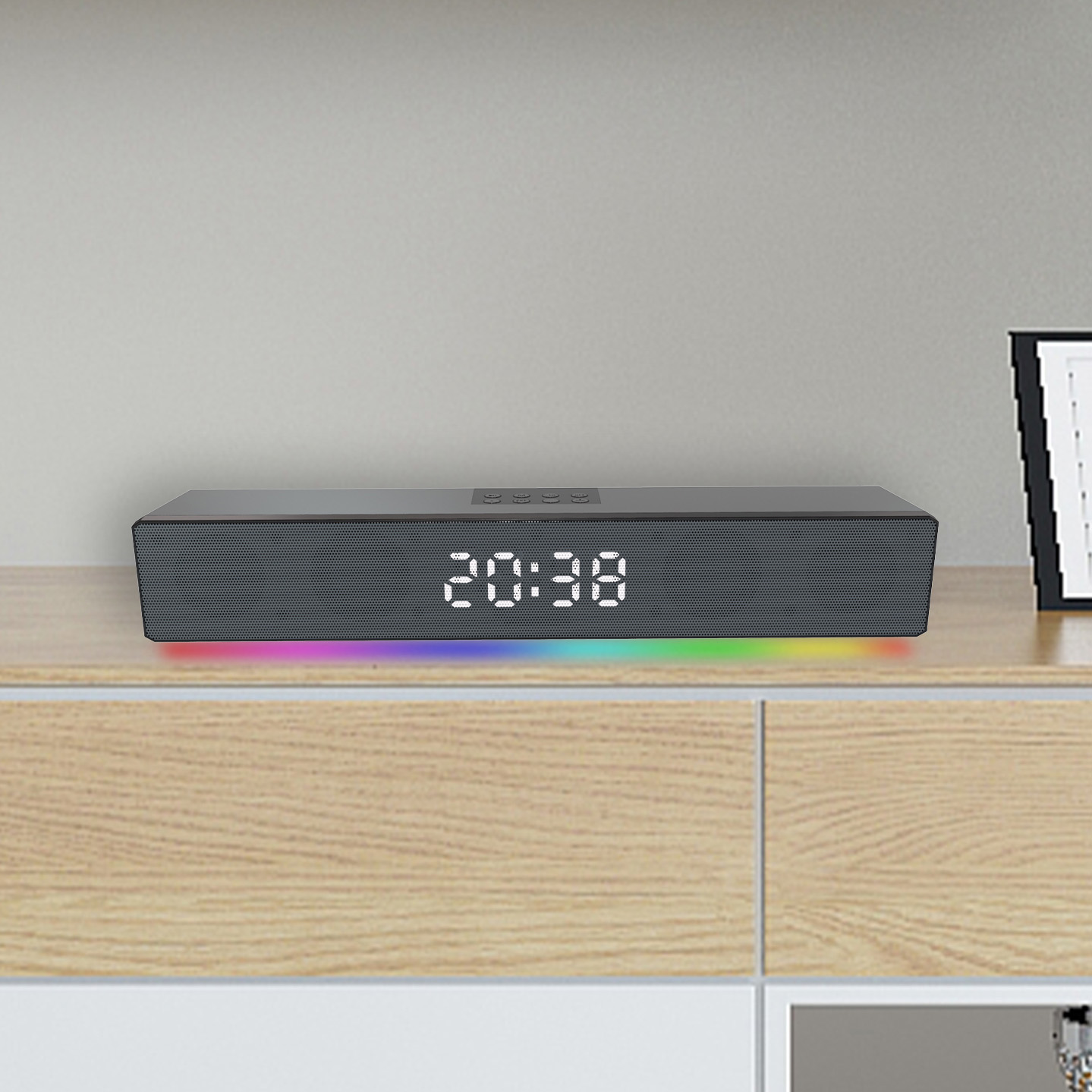 BT05-001Support: BT, TF Card, AUX, FM, RGB, Arm Clock.