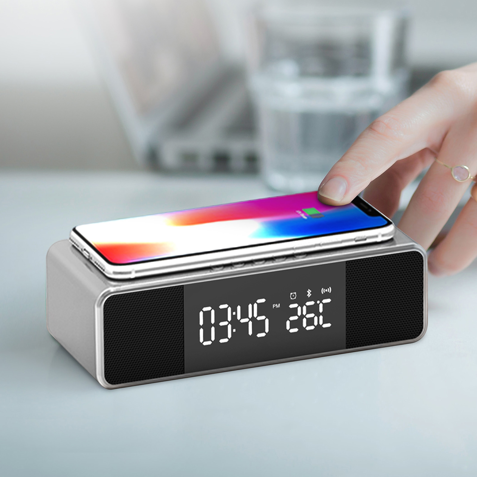 3 In 1 Bluetooth Speaker Clock with Wireless Charging Powerbank