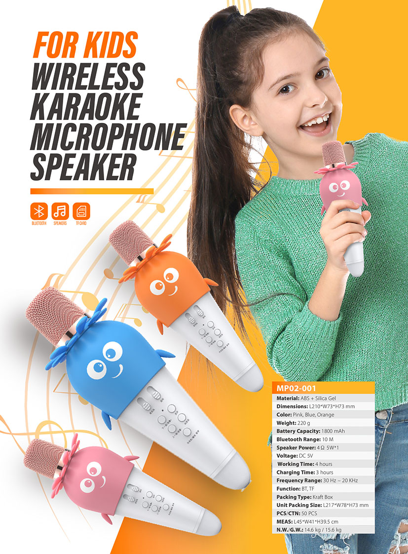 MP02-001Portable handheld karaoke mic speaker machine for kids.