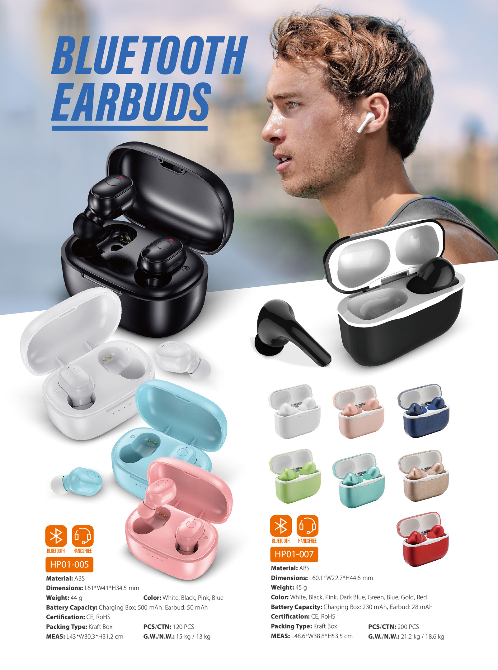 HP01-005Bluetooth earbuds ensures a comfortable tactility. The unique ideas and chic design style of this true wireless earbuds, all brings surprises and unexpected experiences.