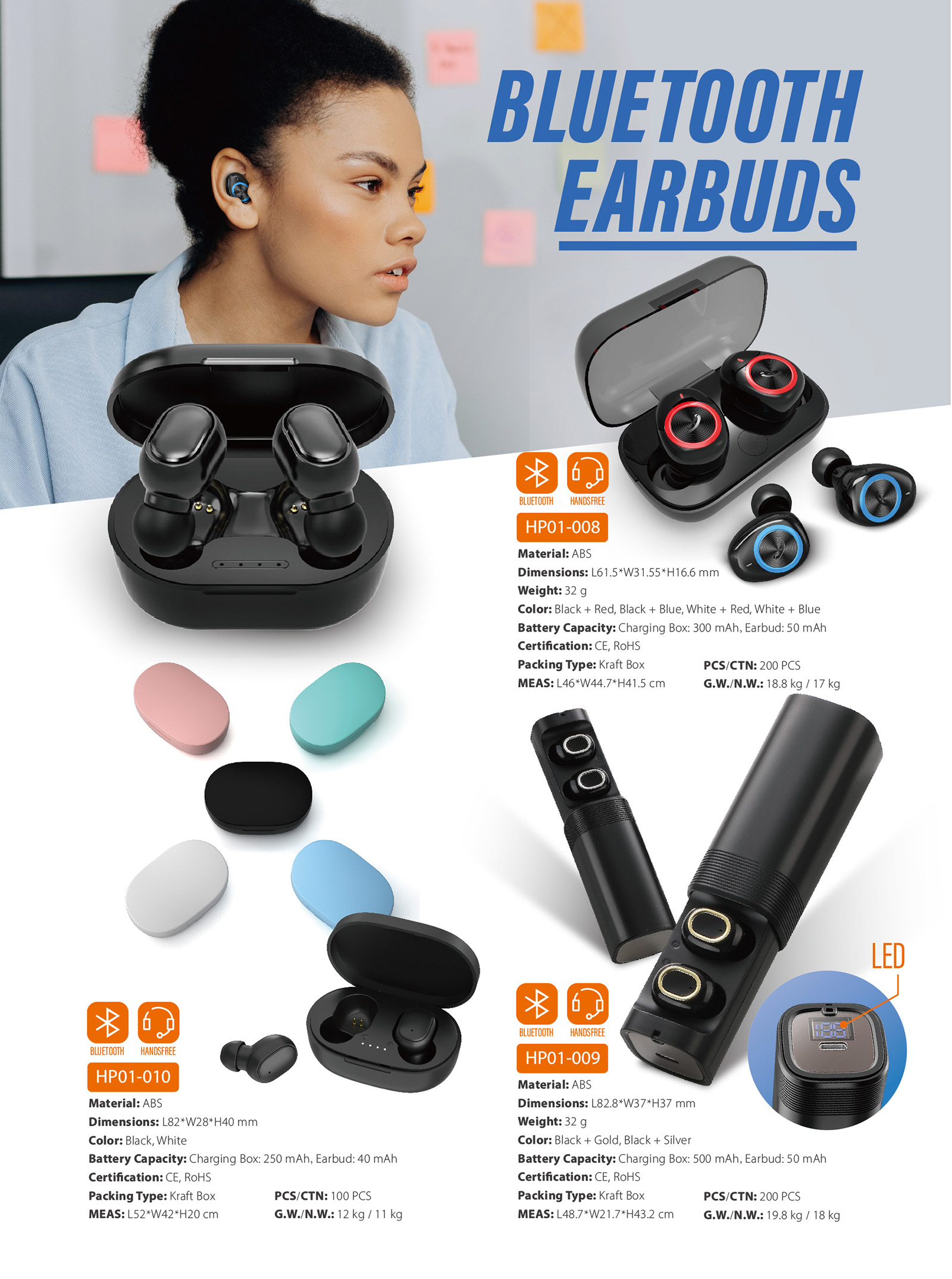 HP01-008Bluetooth earbuds ensures a comfortable tactility. The unique ideas and chic design style of this true wireless earbuds, all brings surprises and unexpected experiences.