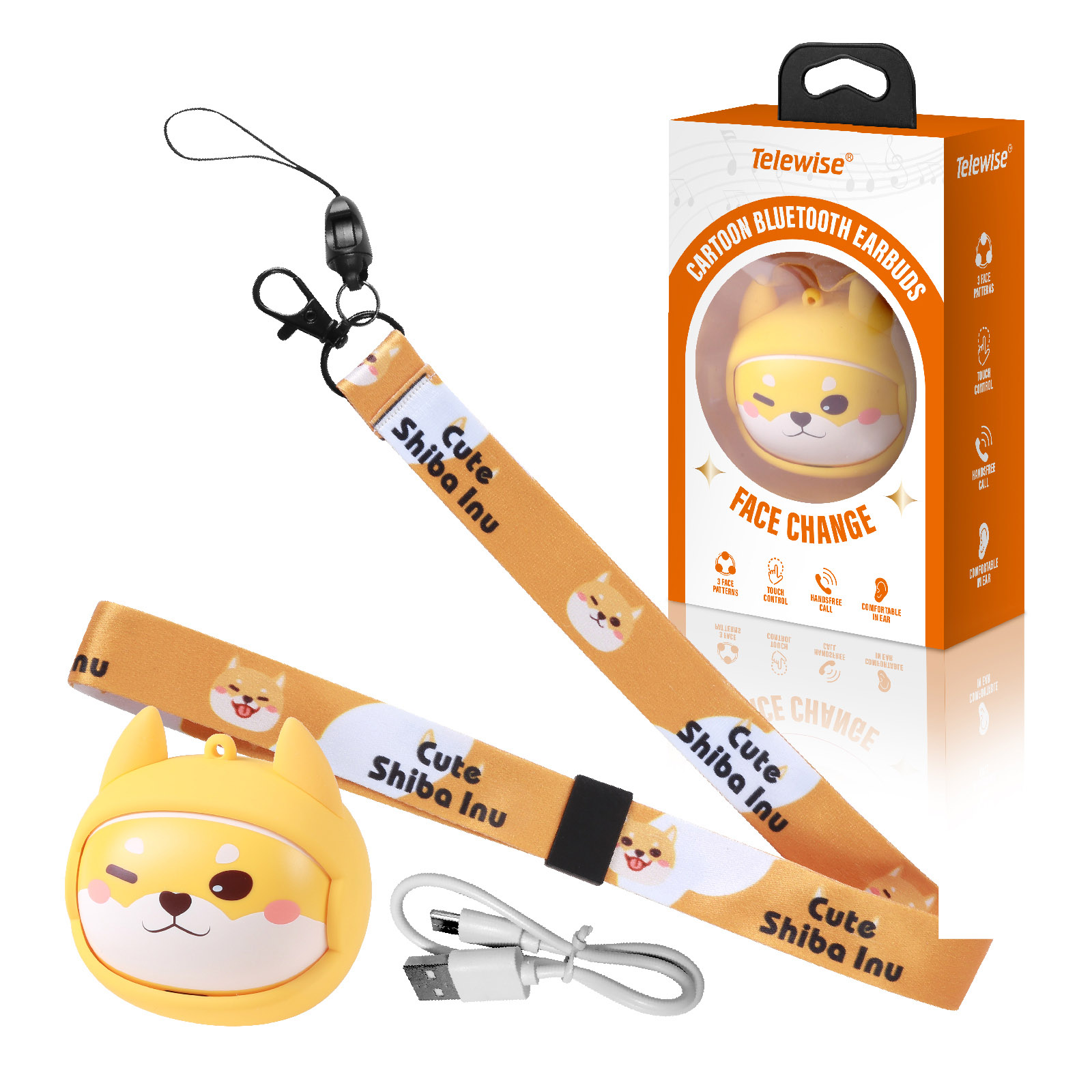 Cartoon Dog TWS Wireless Earbuds with Lanyard
