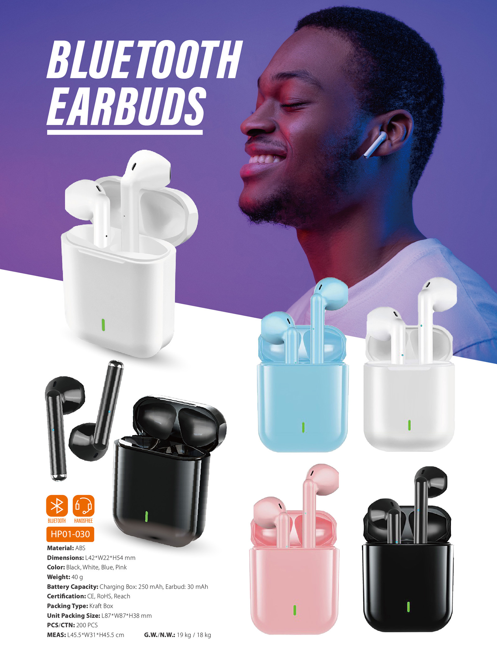 HP01-030Bluetooth earbuds ensures a comfortable tactility. The unique ideas and chic design style of this true wireless earbuds, all brings surprises and unexpected experiences.