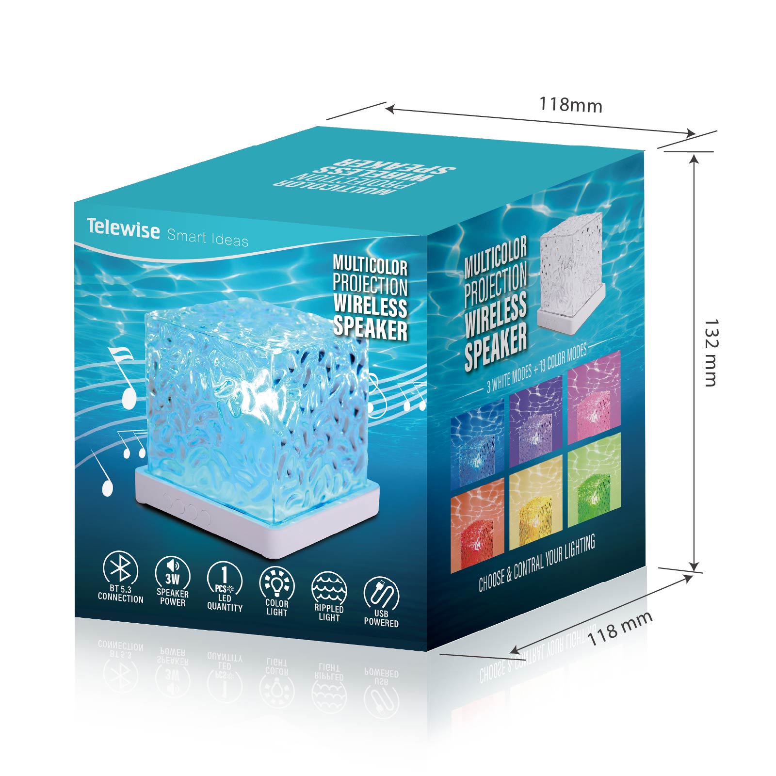 - Function : Bluetooth Speaker, FM Radio, Night Light, Color Projection, USB Powered