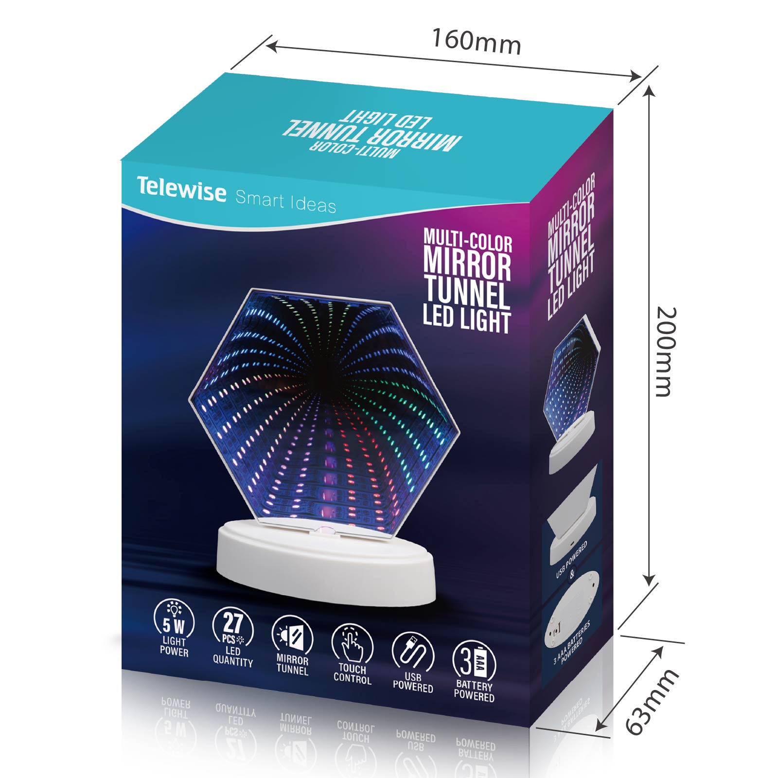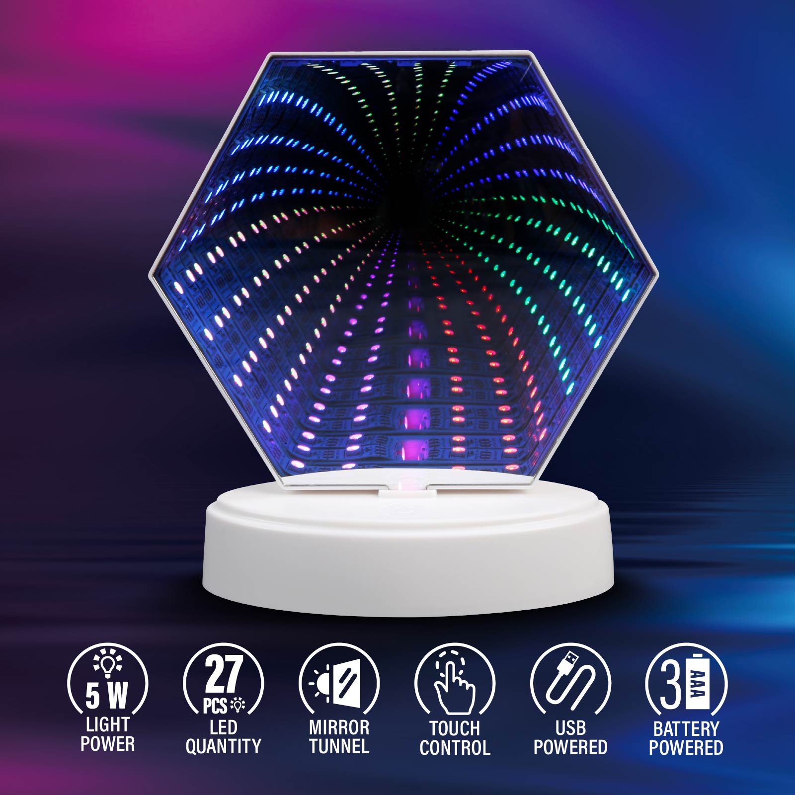 Multi-Color Mirror Tunnel Light (Hexagon)