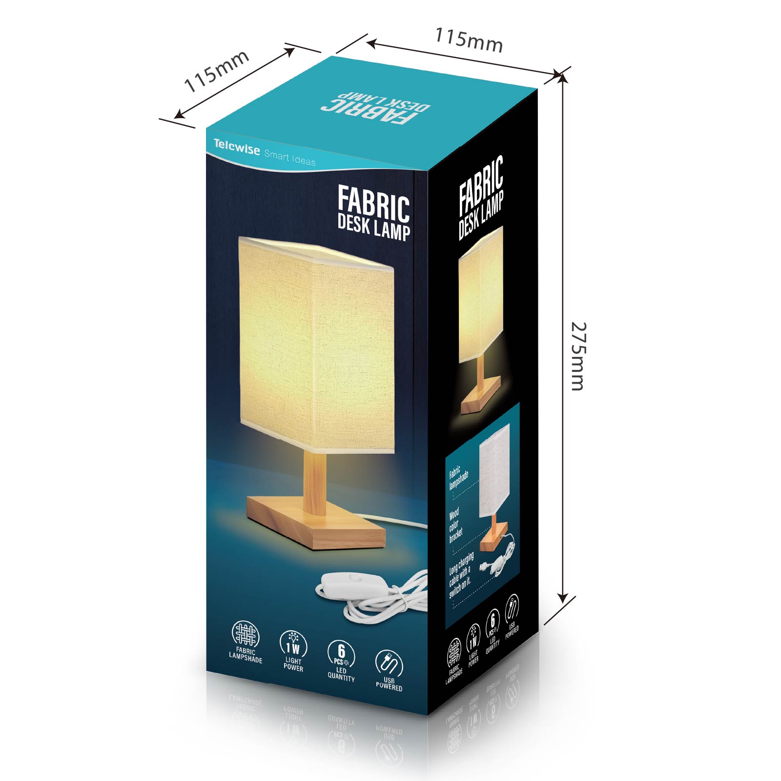 LG03-354The elegant, stylish look of this table lamp enhances the beauty of your home, with an open top cloth cover in beige linen hovering over a small solid wood base.