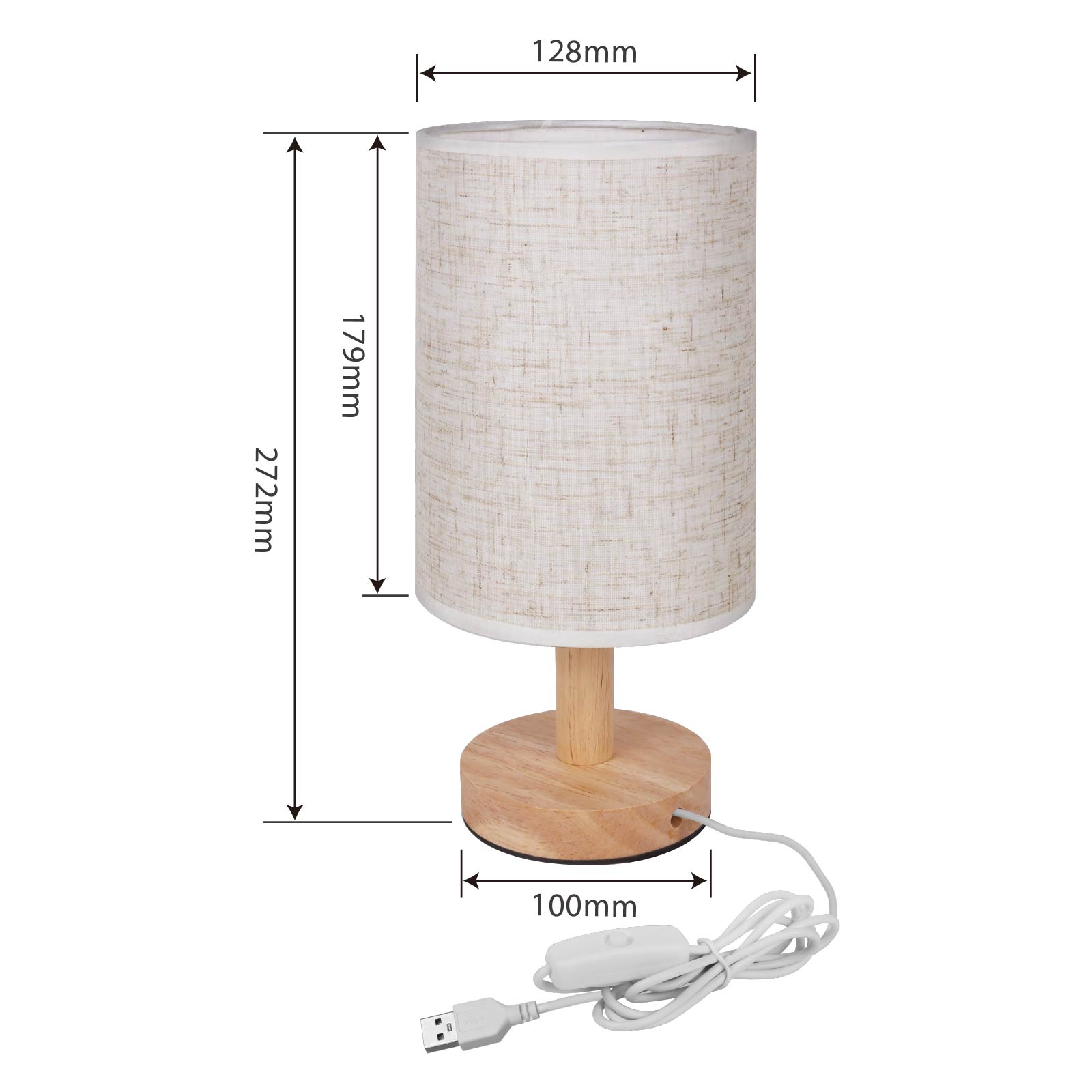 LG03-355The elegant, stylish look of this table lamp enhances the beauty of your home, with an open top cloth cover in beige linen hovering over a small solid wood base.