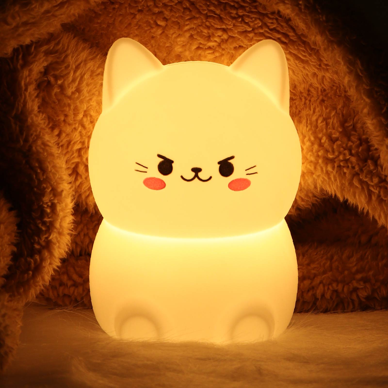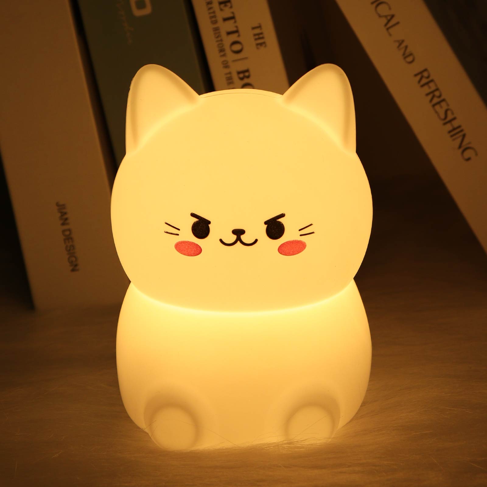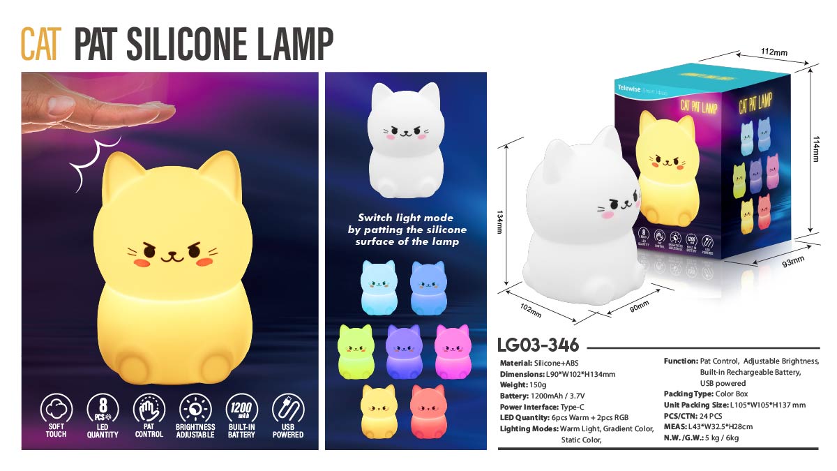 LG03-346Super cute night light, soothing glow creates a relaxing bedtime experience which can protect your kids from darkness and help them fall asleep. You can change its light color by patting the silicone surface.