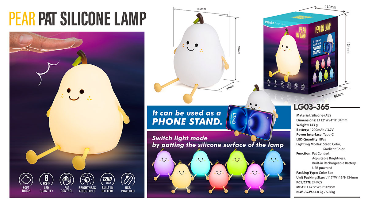 LG03-365Super cute night light, soothing glow creates a relaxing bedtime experience which can protect your kids from darkness and help them fall asleep. You can change its light color by patting the silicone surface.