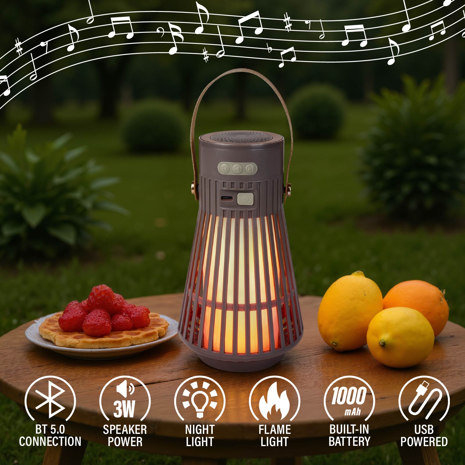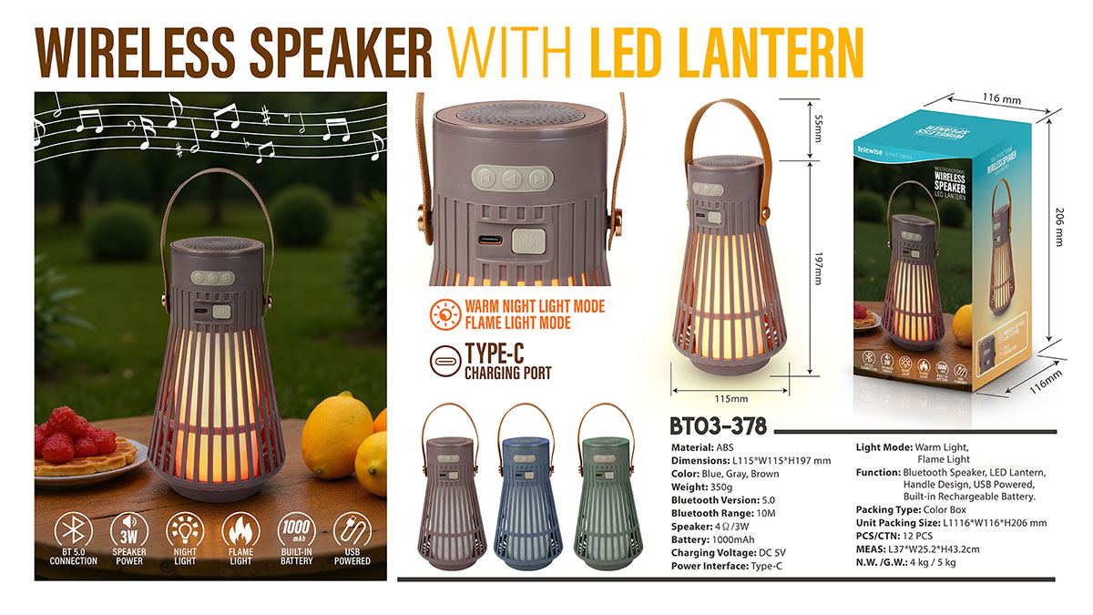 BT03-378Wireless Lantern Speaker blends artistry with audio. Let your music paint the night in every hue.
