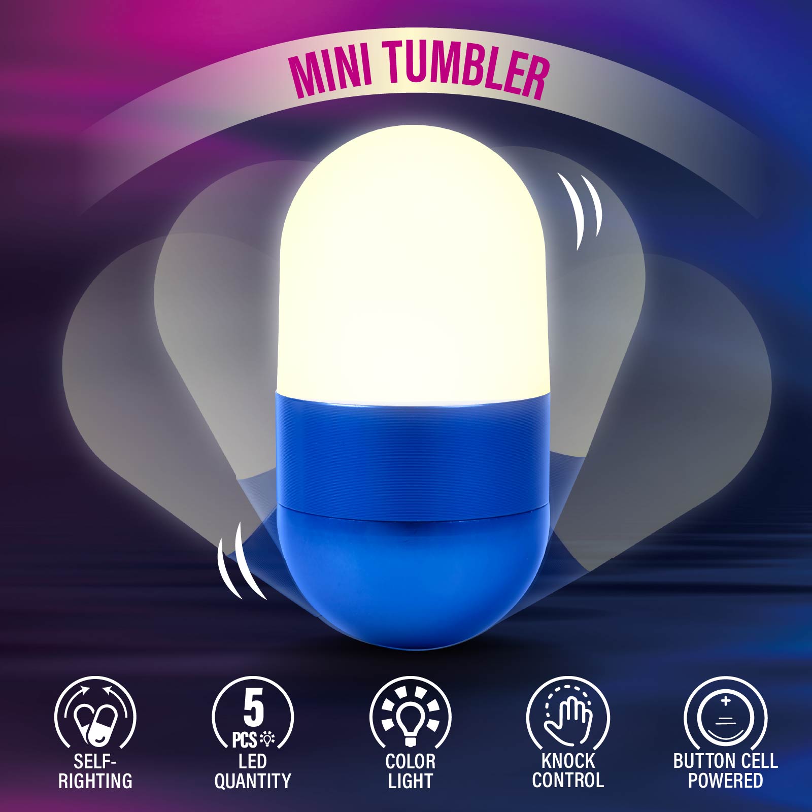 Knock the Tumbler LED Capsule! Crafted in a unique capsule shape, its top part is an LED light. Designed as a roly - poly, it remains upright all the time.