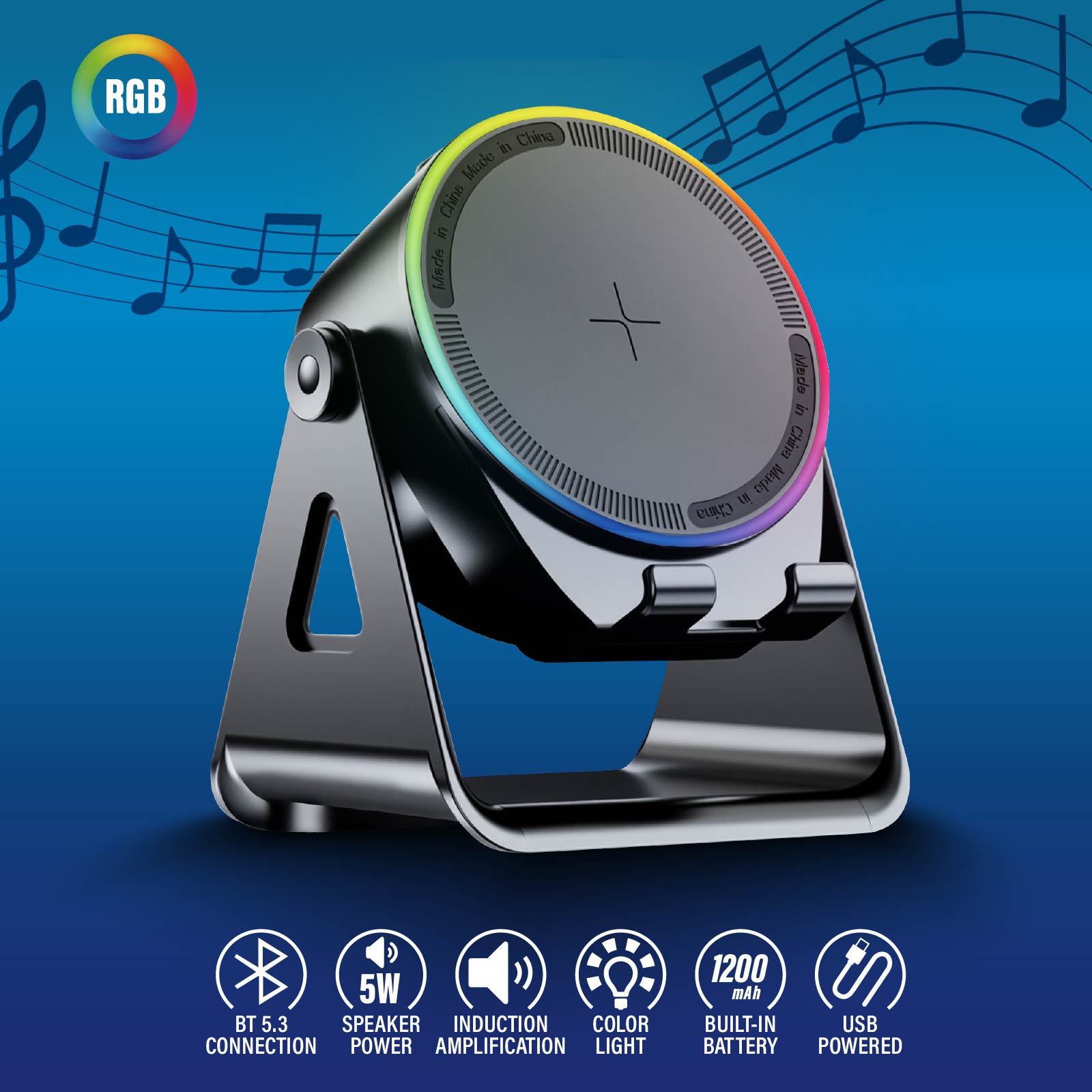 BT03-380Dual-mode voice control, free switching : Sensing mode/Bluetooth 5.3 dual-channel intelligent switching. Simply place your phone on the stand, and it will automatically detect your device, capture the audio source, and amplify the sound for playback.