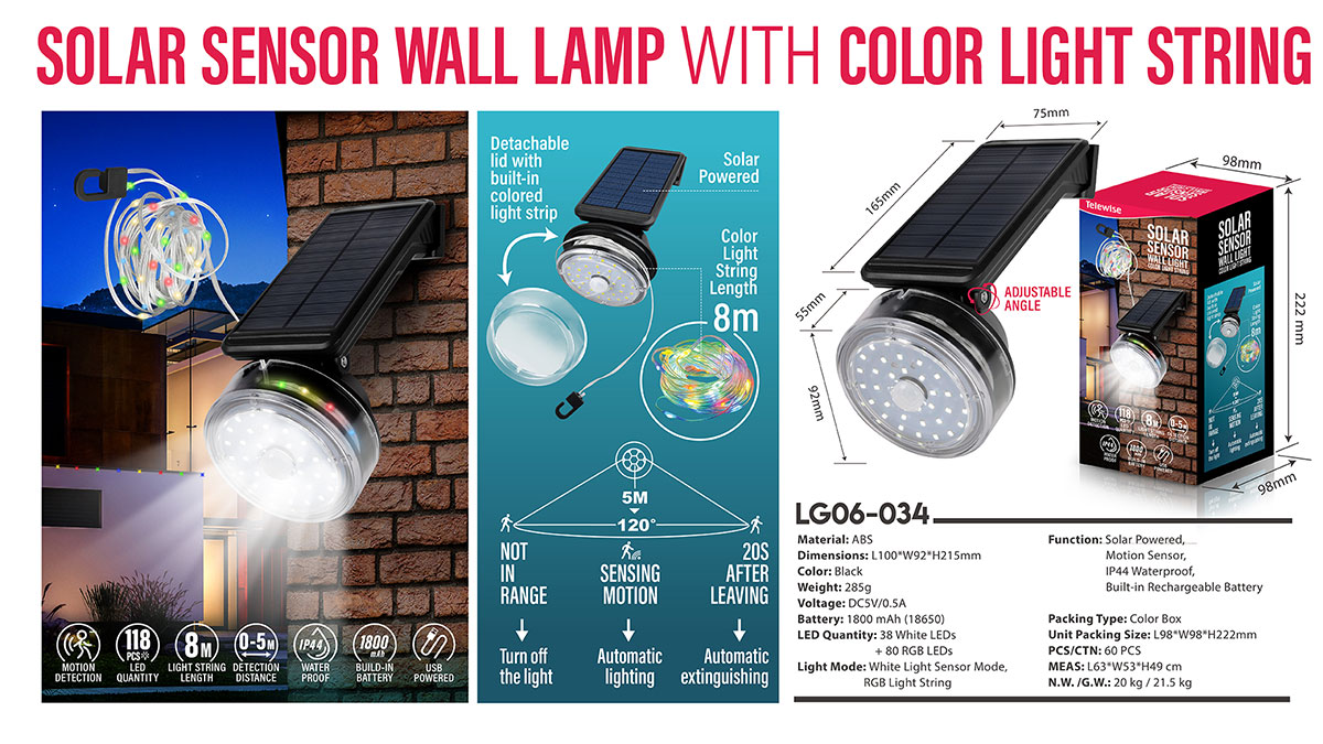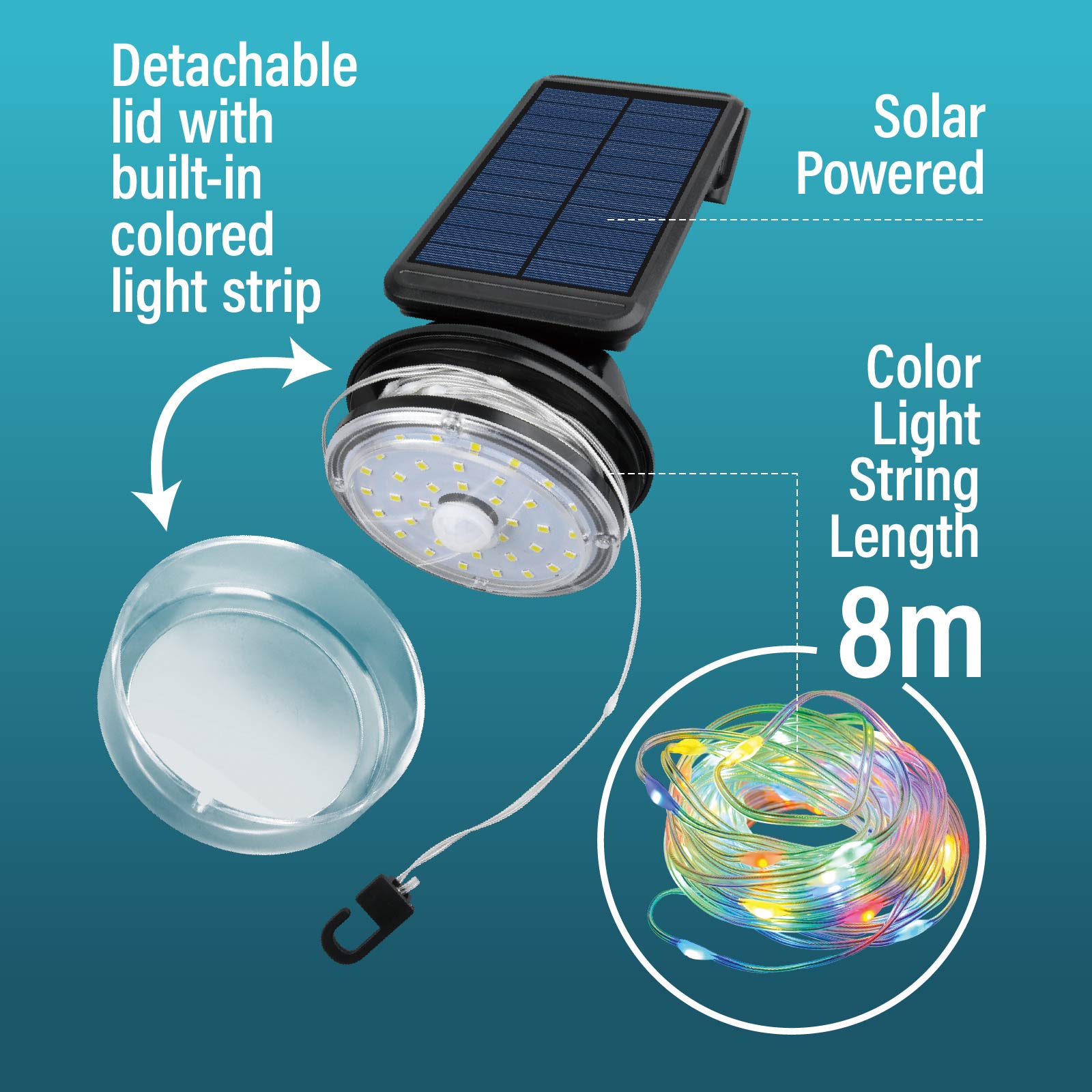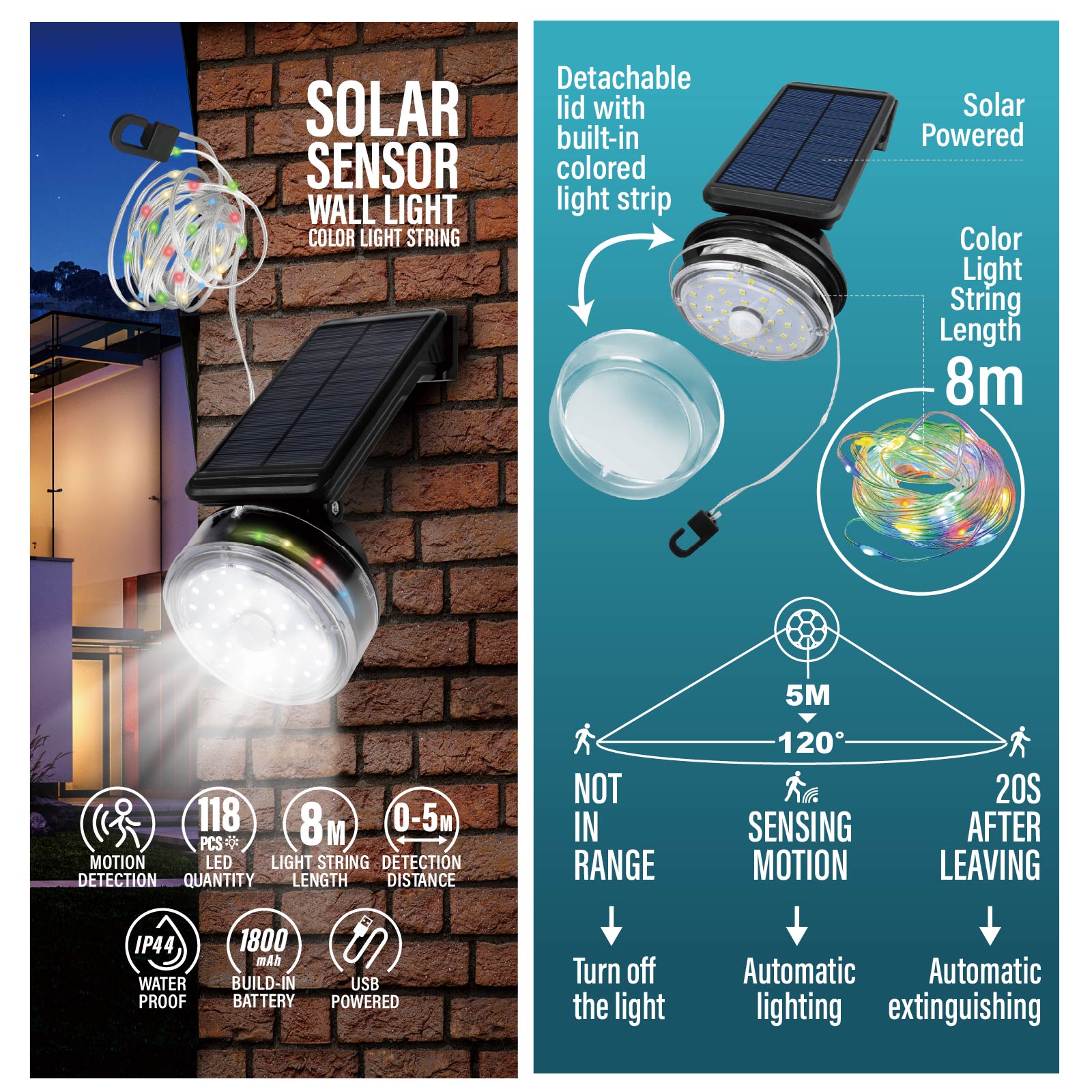 - Function : Solar Powered, Motion Sensor, IP44 Waterproof, Built-in Rechargeable Battery