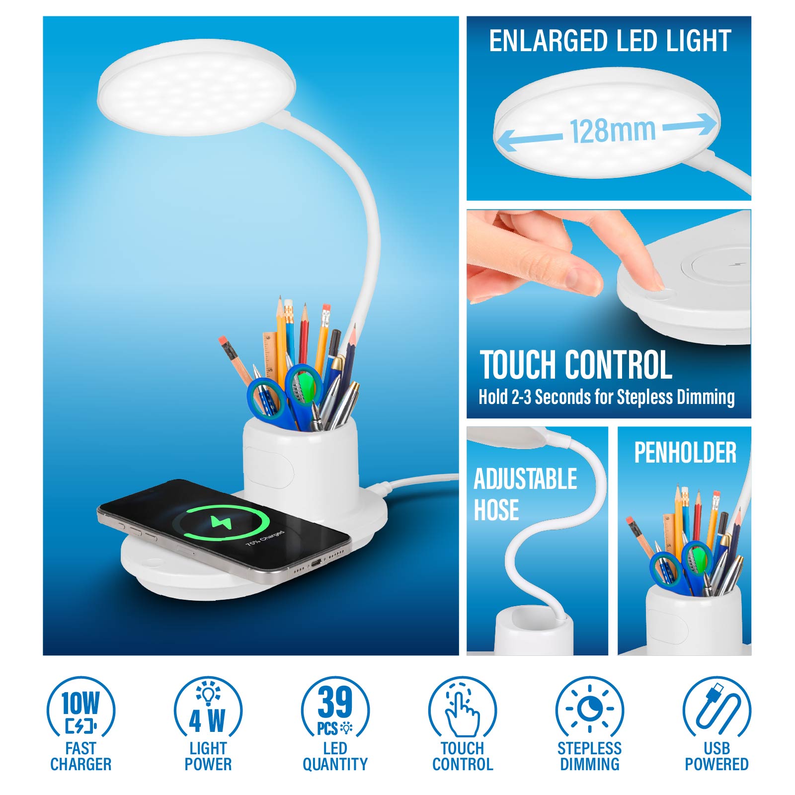 - Function : Desktop Lamp, Adjustable Hose, Pen Holder, Wireless Charger, USB Powered