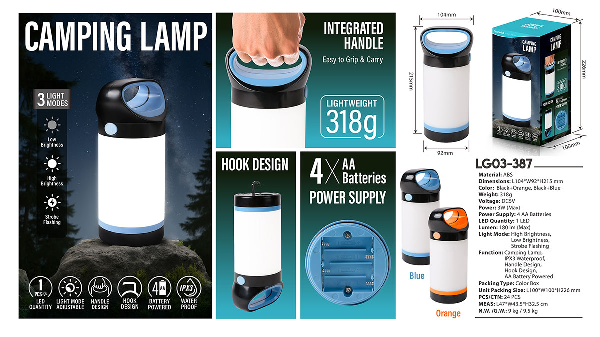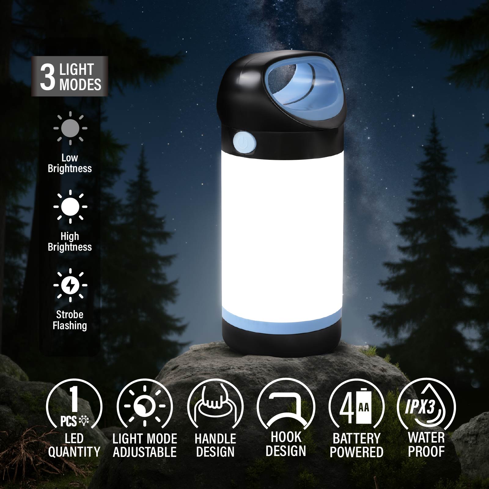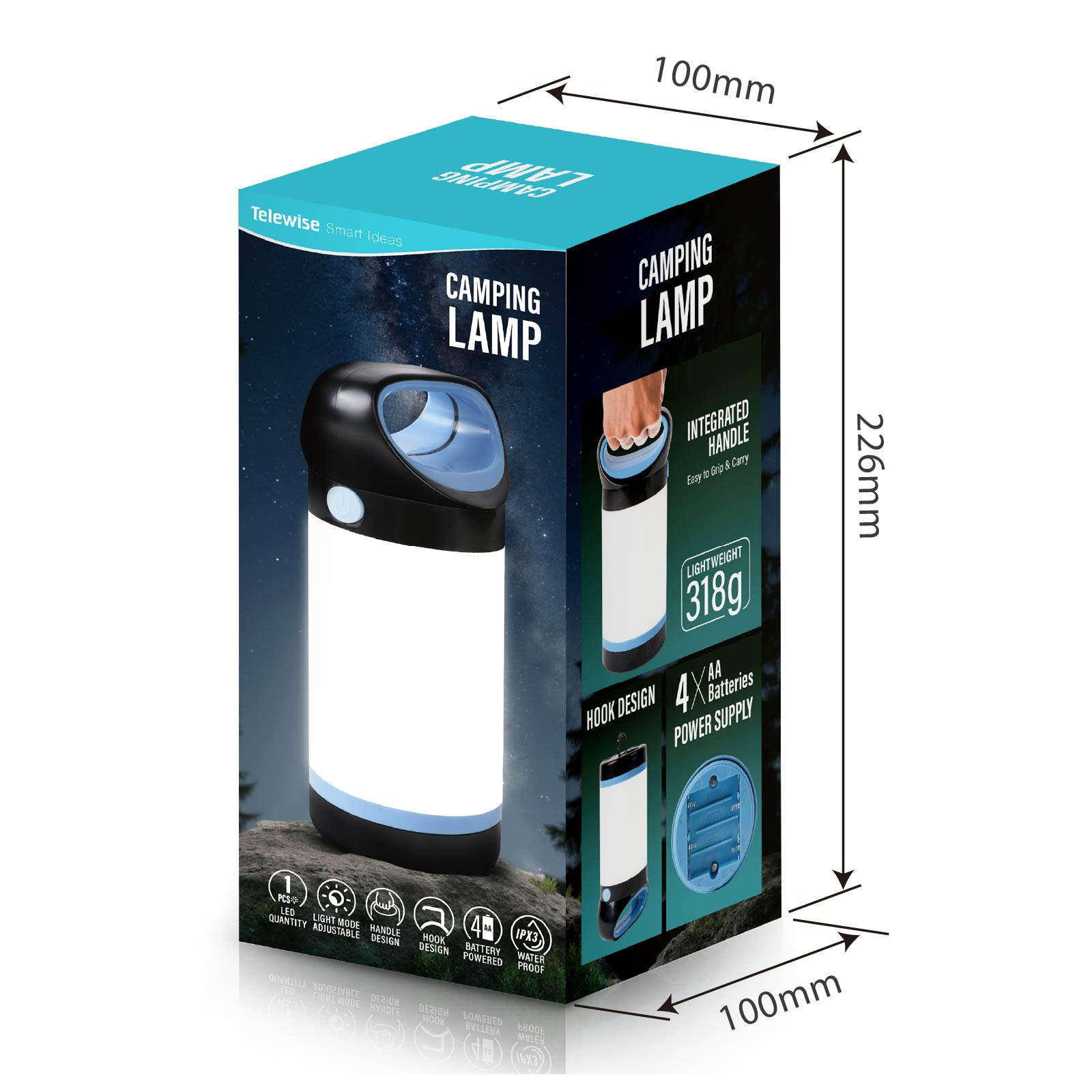 - Function : Camping Lamp, IPX3 Waterproof, AA Battery Powered, Handle Design, Hook Design
