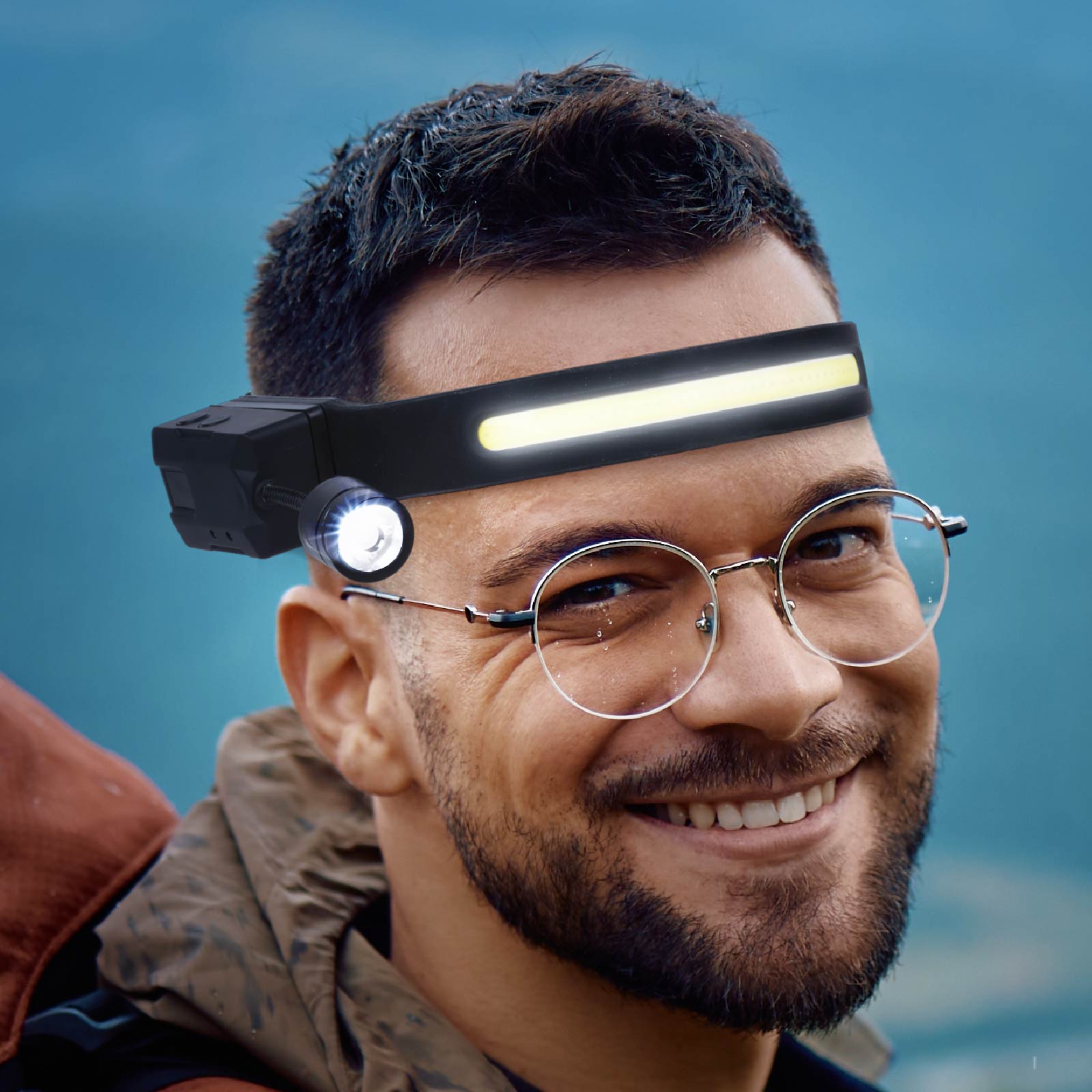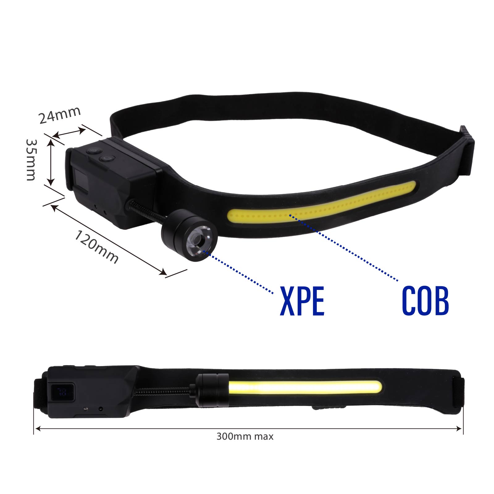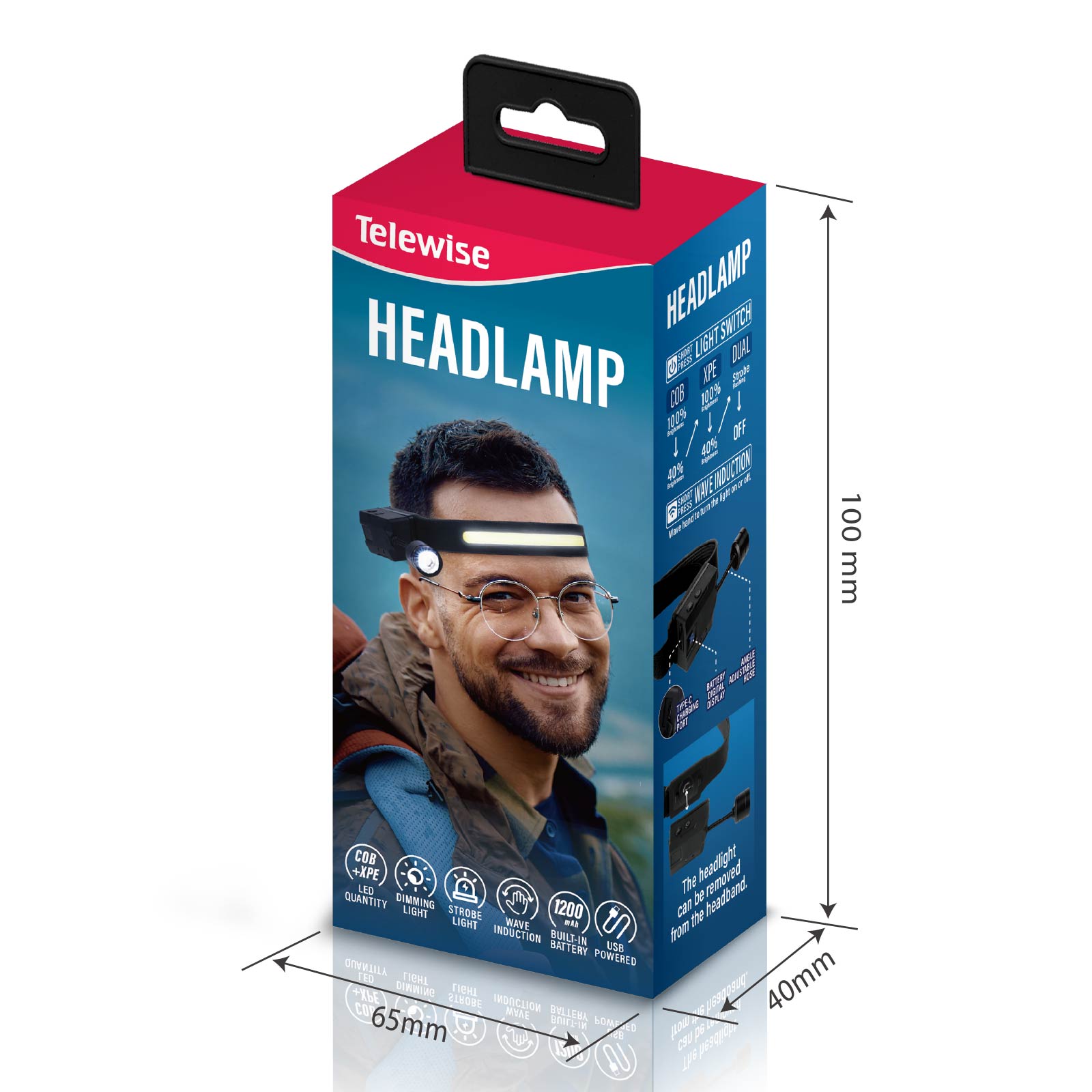 - Function : COB Headlight, XPE Side-light Flashlight, Wave induction, IPX4 Waterproof, USB Powered, Built-in Rechargeable Battery